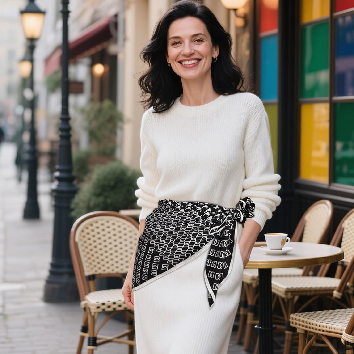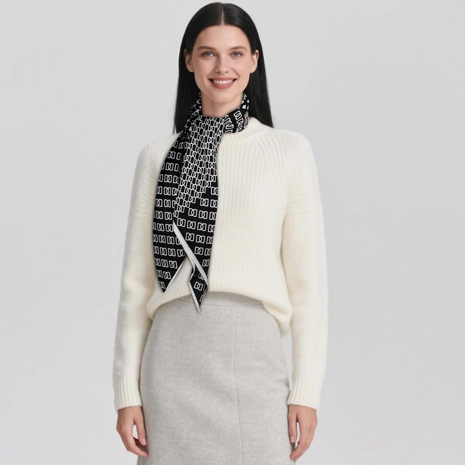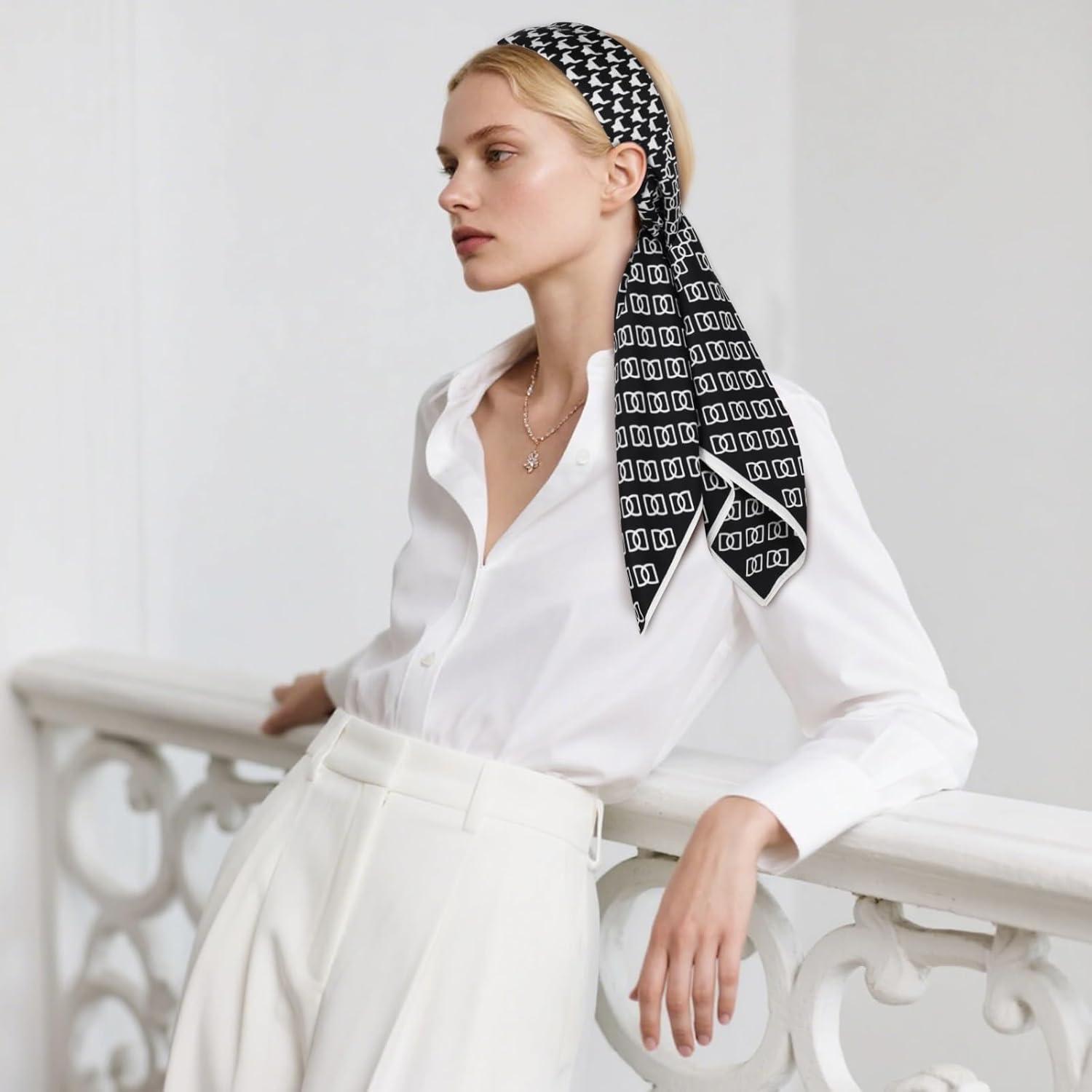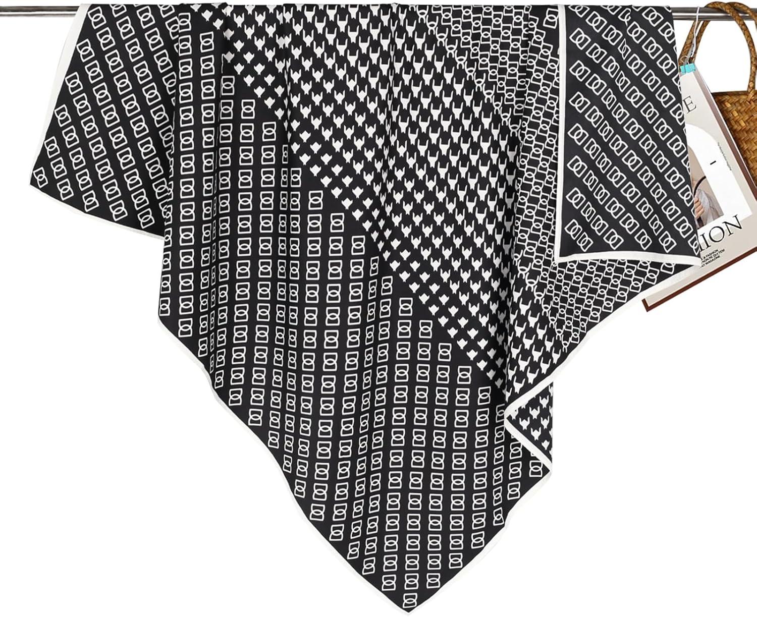 EXTREE Luxury Satin Head Scarf 35×35 – Silk-like Wrap for Women, Versatile Shawl/Sun Cover/Wrapping, Premium Gift for Her(Black and White Checkered Pattern)
