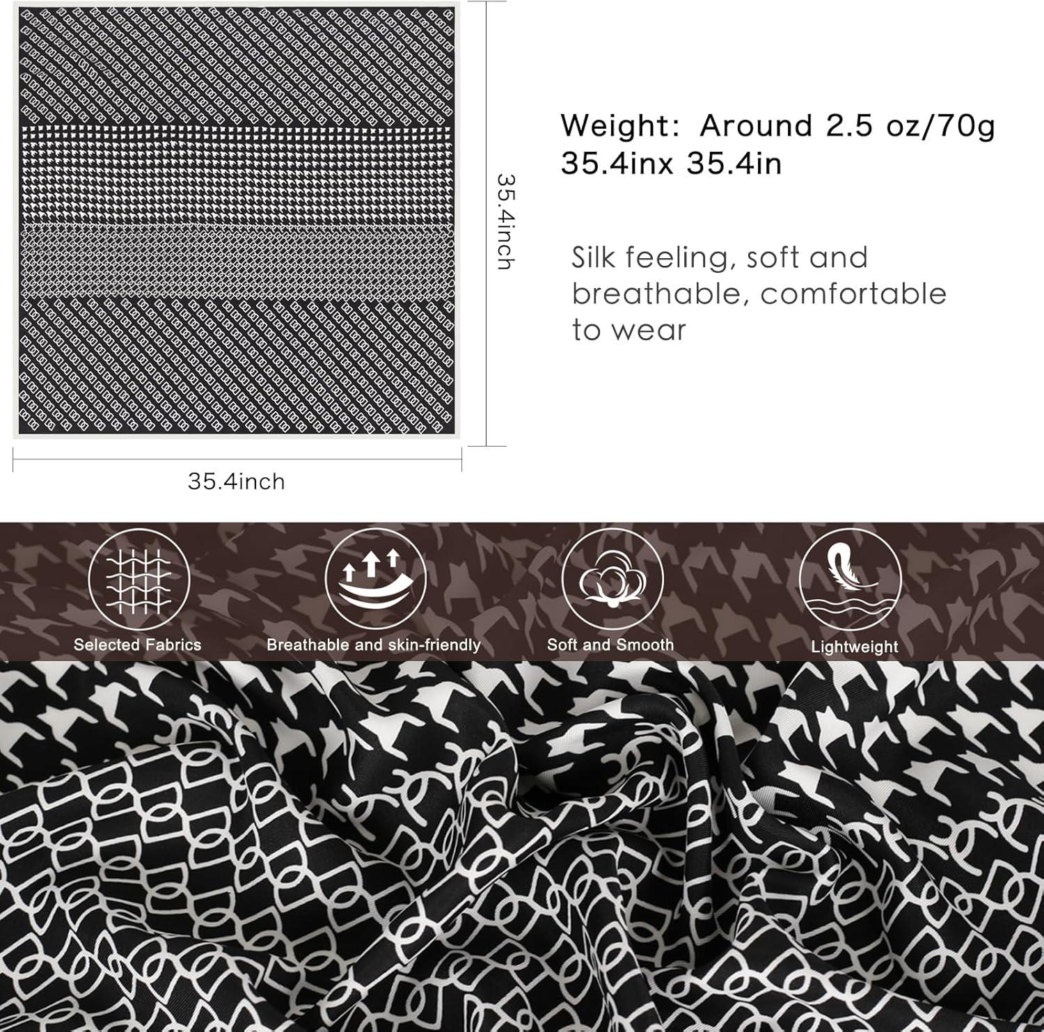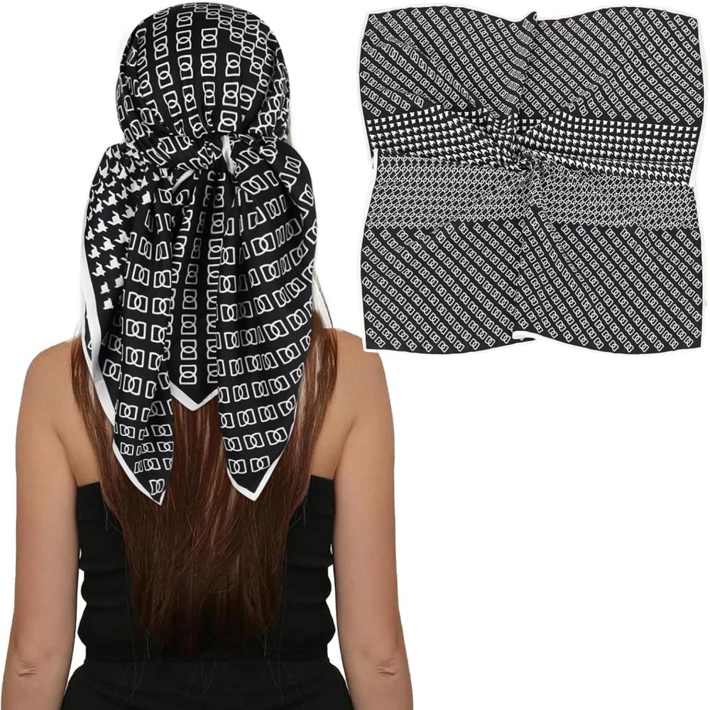 EXTREE Luxury Satin Head Scarf 35x35 - Silk-like Wrap for Women, Versatile Shawl/Sun Cover/Wrapping, Premium Gift for Her(Black Houndstooth Letters)