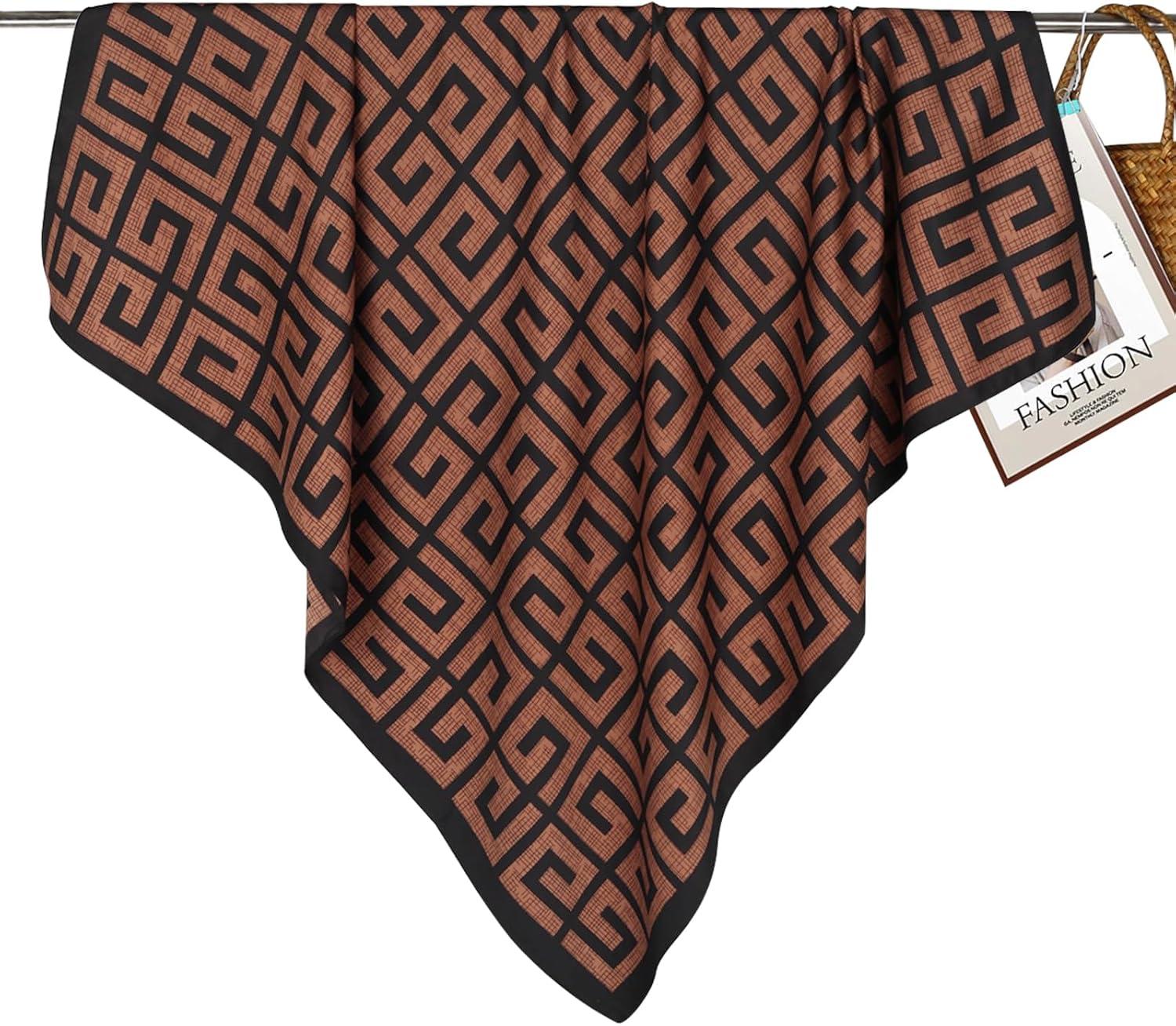 EXTREE Luxury Satin Head Scarf 35x35 - Silk-like Wrap for Women, Versatile Shawl/Sun Cover/Wrapping, Premium Gift for Her(Dark Brown Back Pattern)
