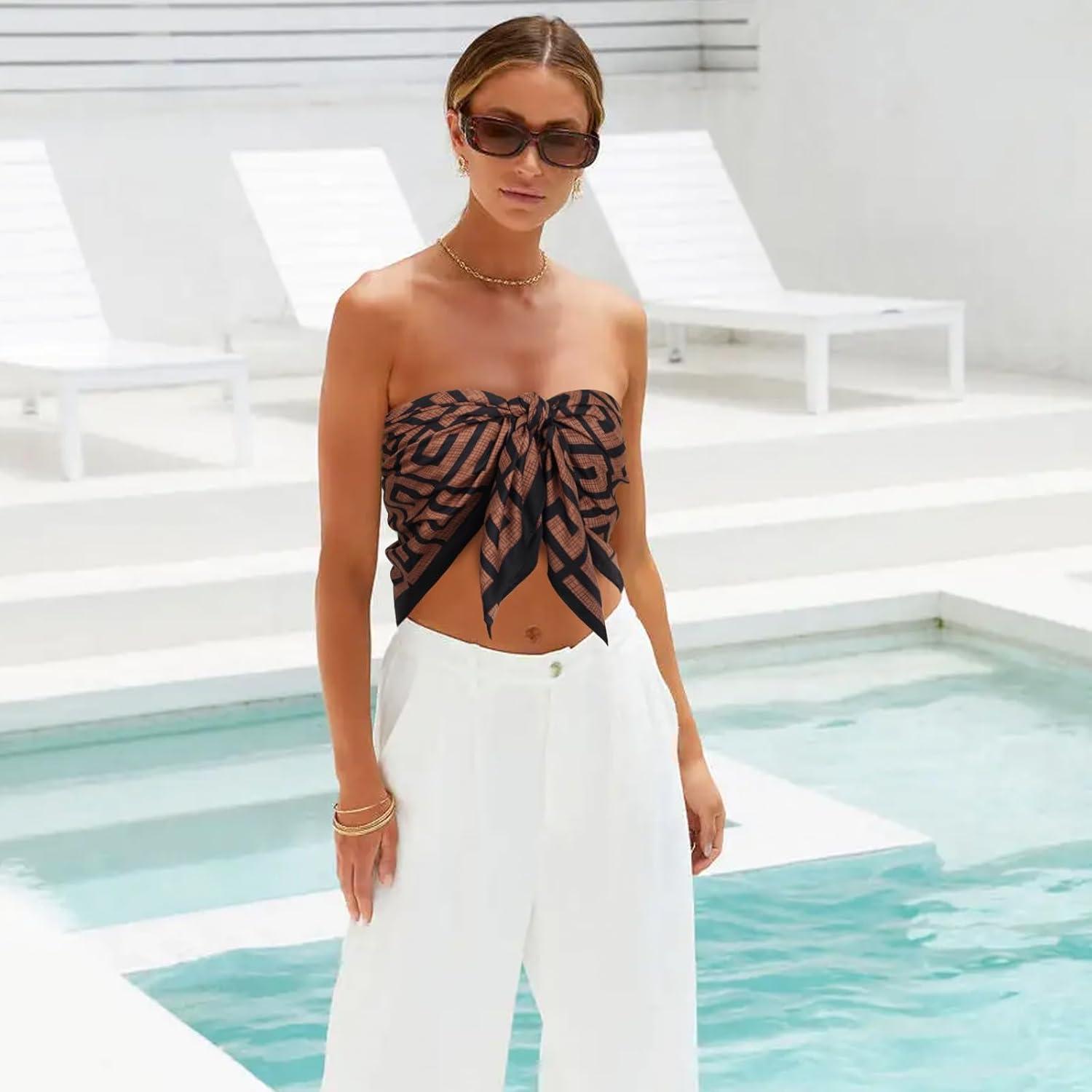 imageEXTREE Luxury Satin Head Scarf 35x35  Silklike Wrap for Women Versatile ShawlSun CoverWrapping Premium Gift for HerDark Brown Fashionable Letter Pattern