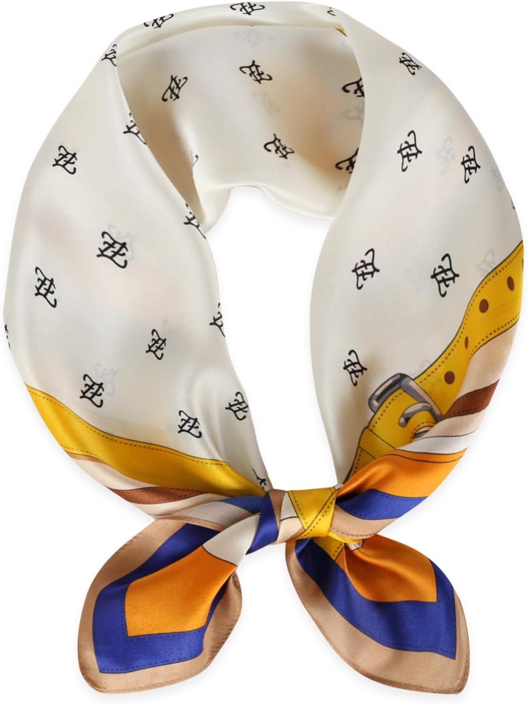 EXTREE 100% Pure Mulberry Silk Scarf Fashion Hair for Women Scarf Lightweight Square Neckerchief 27.5× 27.5 inches(Belt Buckle Beige)