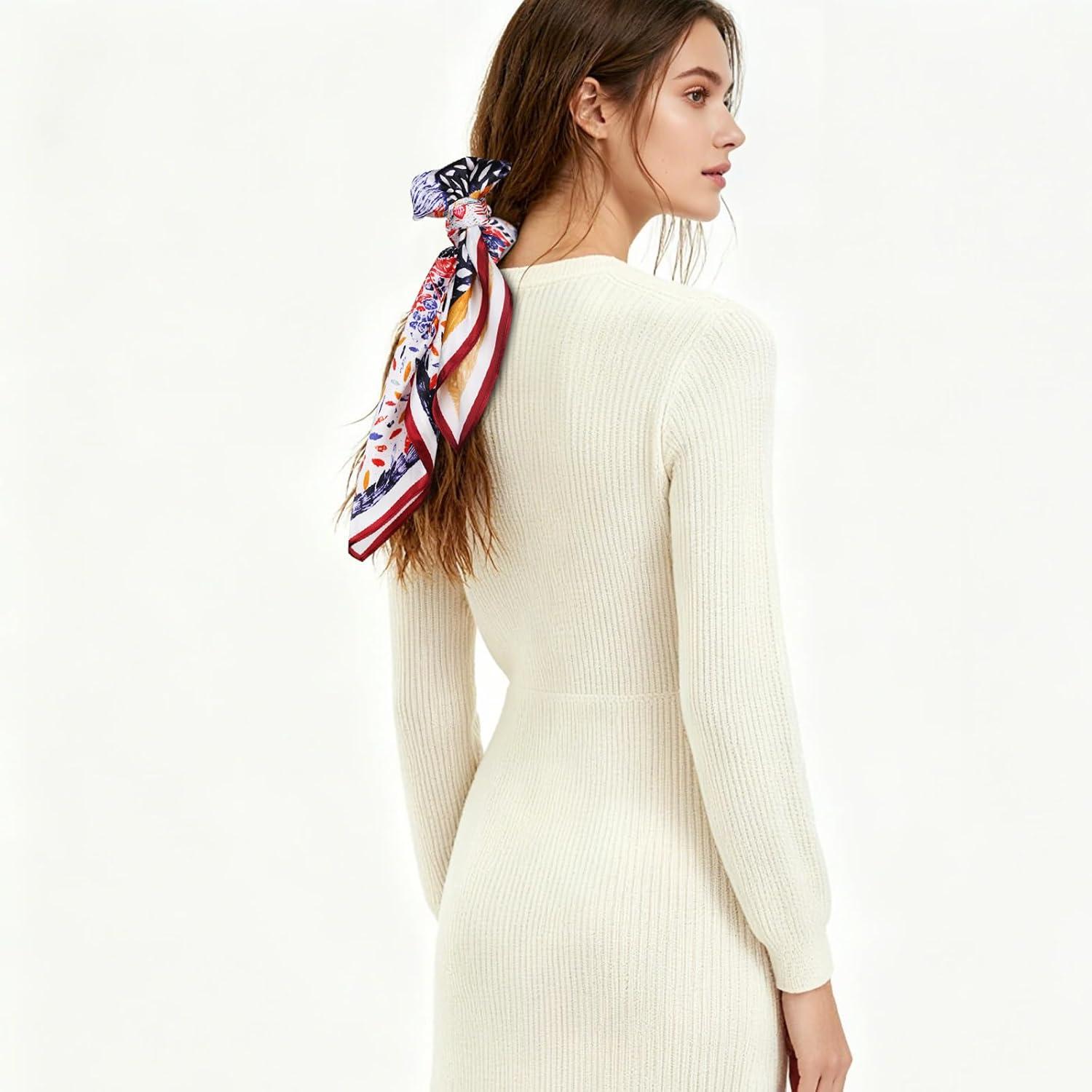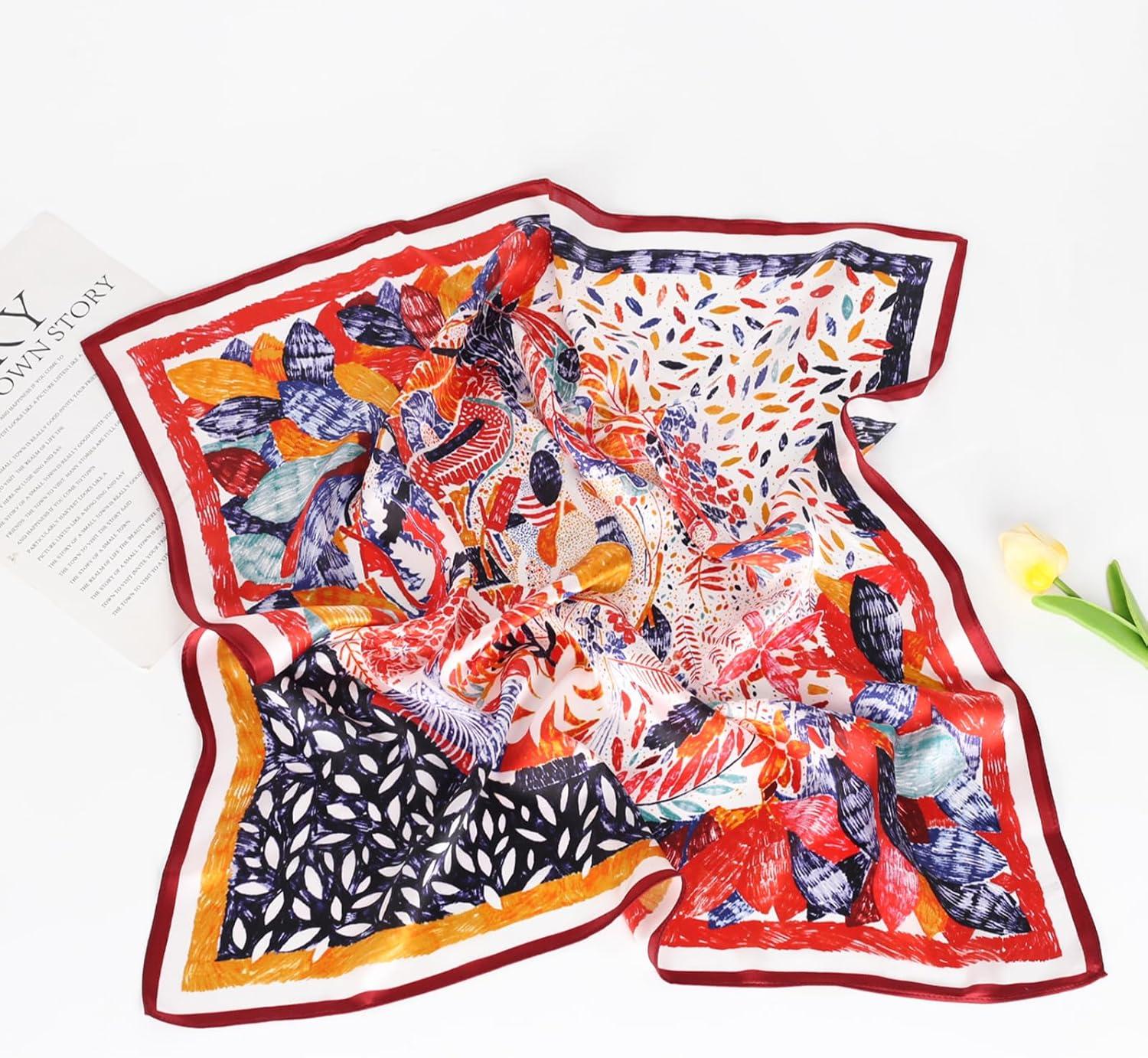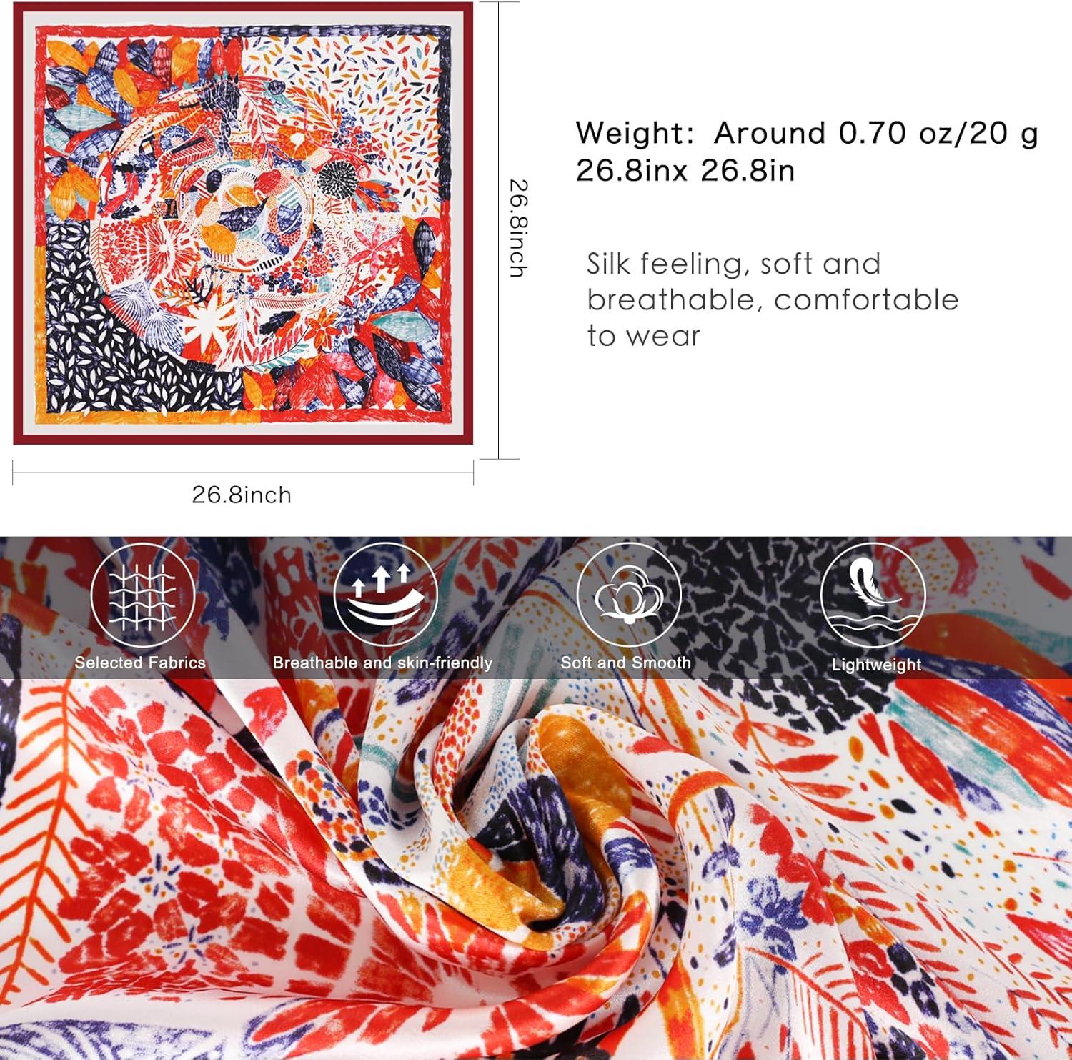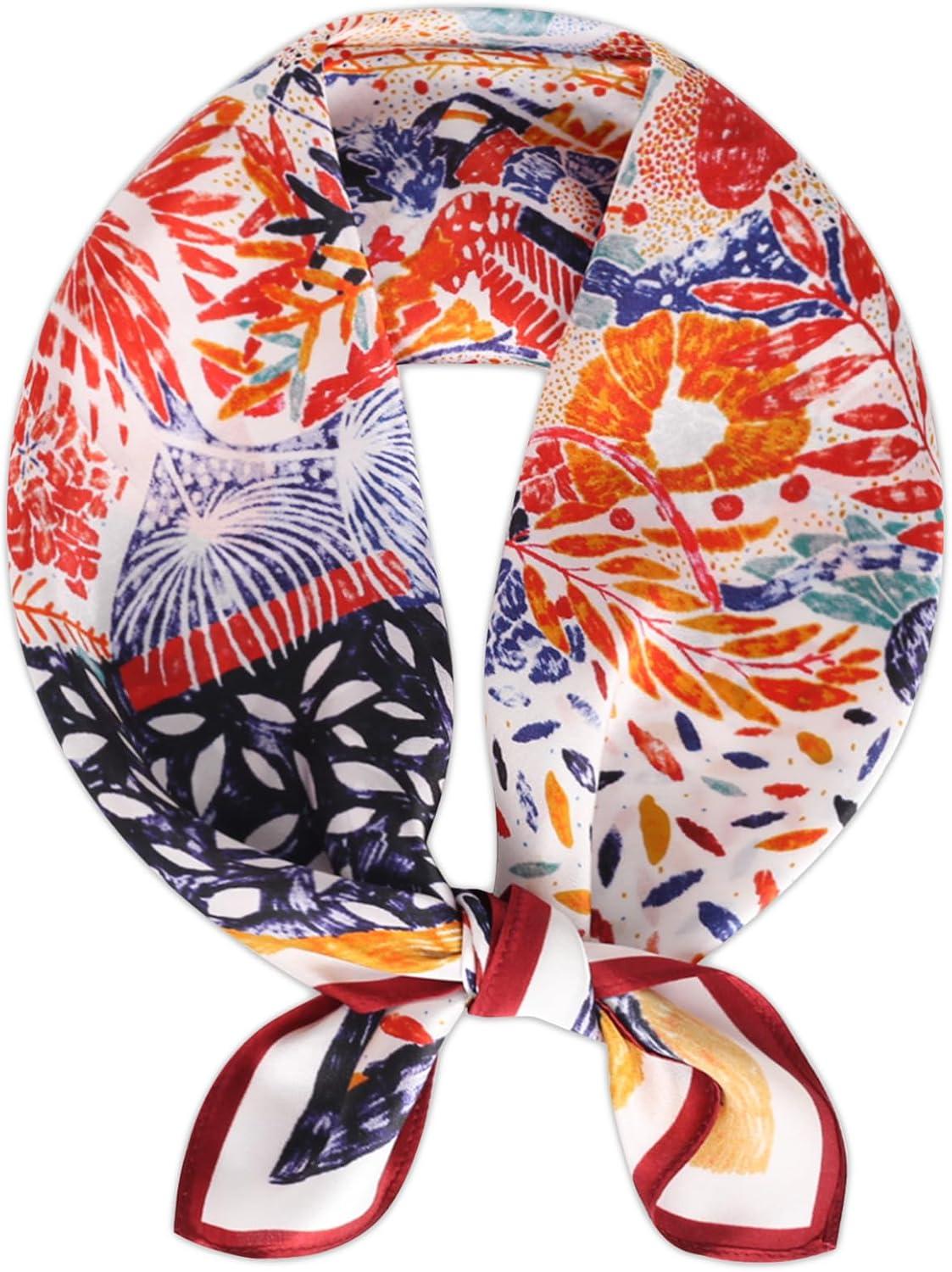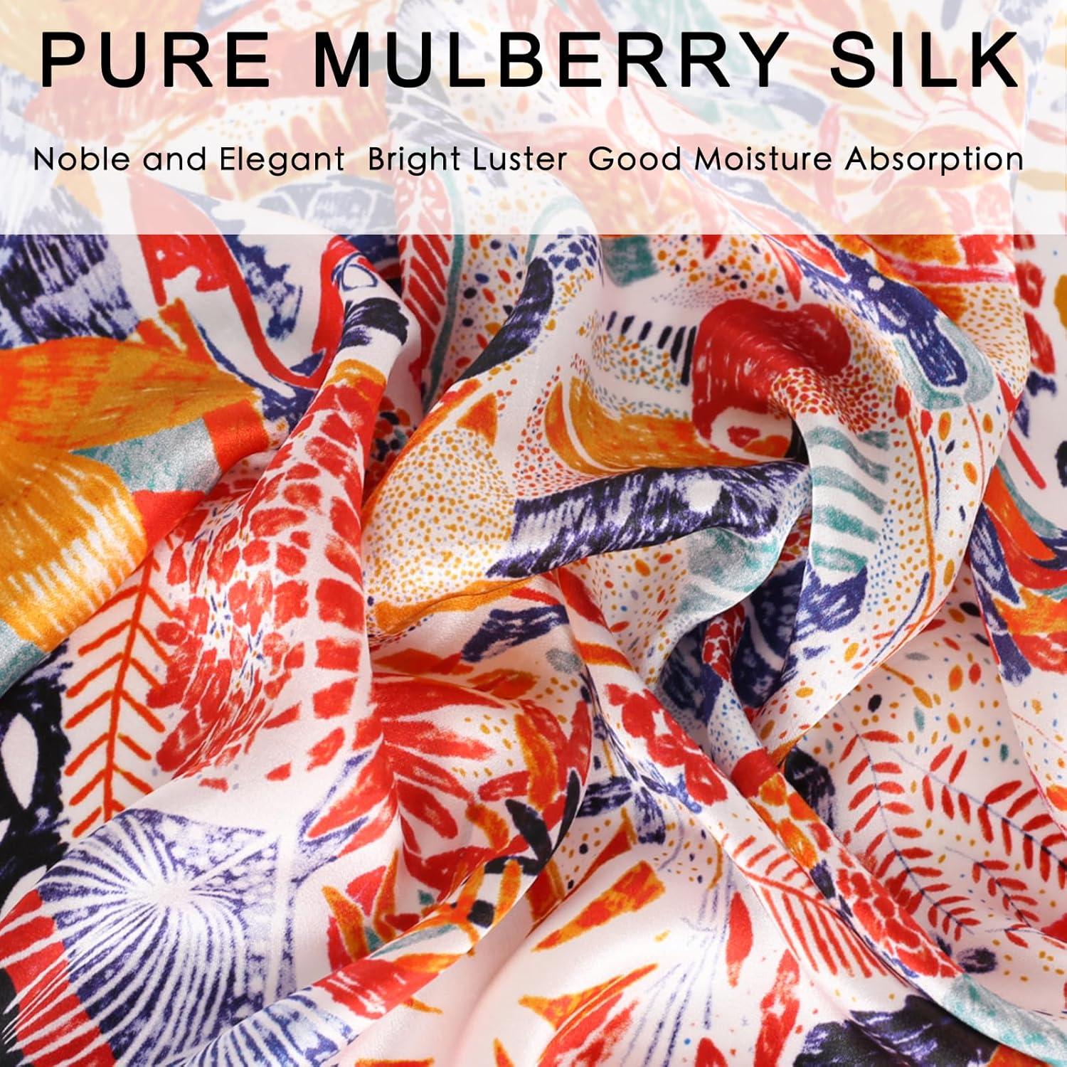 EXTREE 100% Pure Mulberry Silk Scarf Fashion Hair for Women Scarf Lightweight Square Neckerchief 27.5× 27.5 inches(Millennium Mambo)