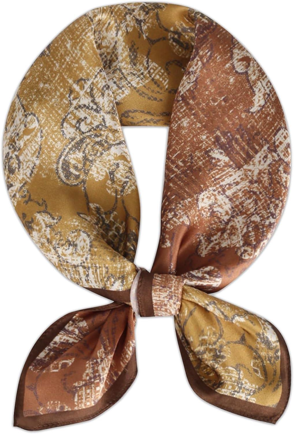 EXTREE 100% Pure Mulberry Silk Scarf Fashion Hair for Women Scarf Lightweight Square Neckerchief 27.5× 27.5 inches(Colorful Animal Apricot)