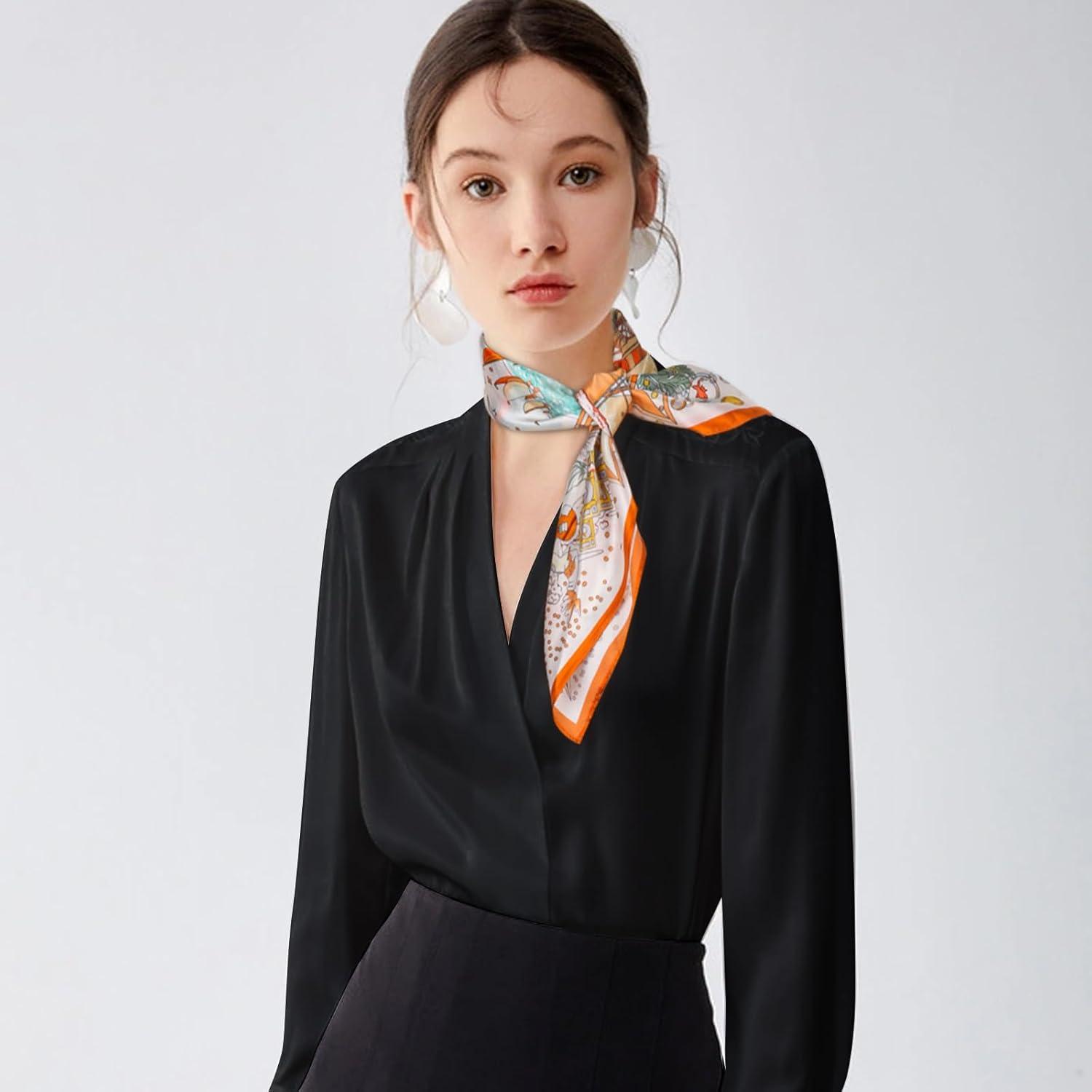 imageEXTREE 100 Pure Mulberry Silk Scarf Fashion Hair for Women Scarf Lightweight Square Neckerchief 275 275 inchesFubao Cruise Party