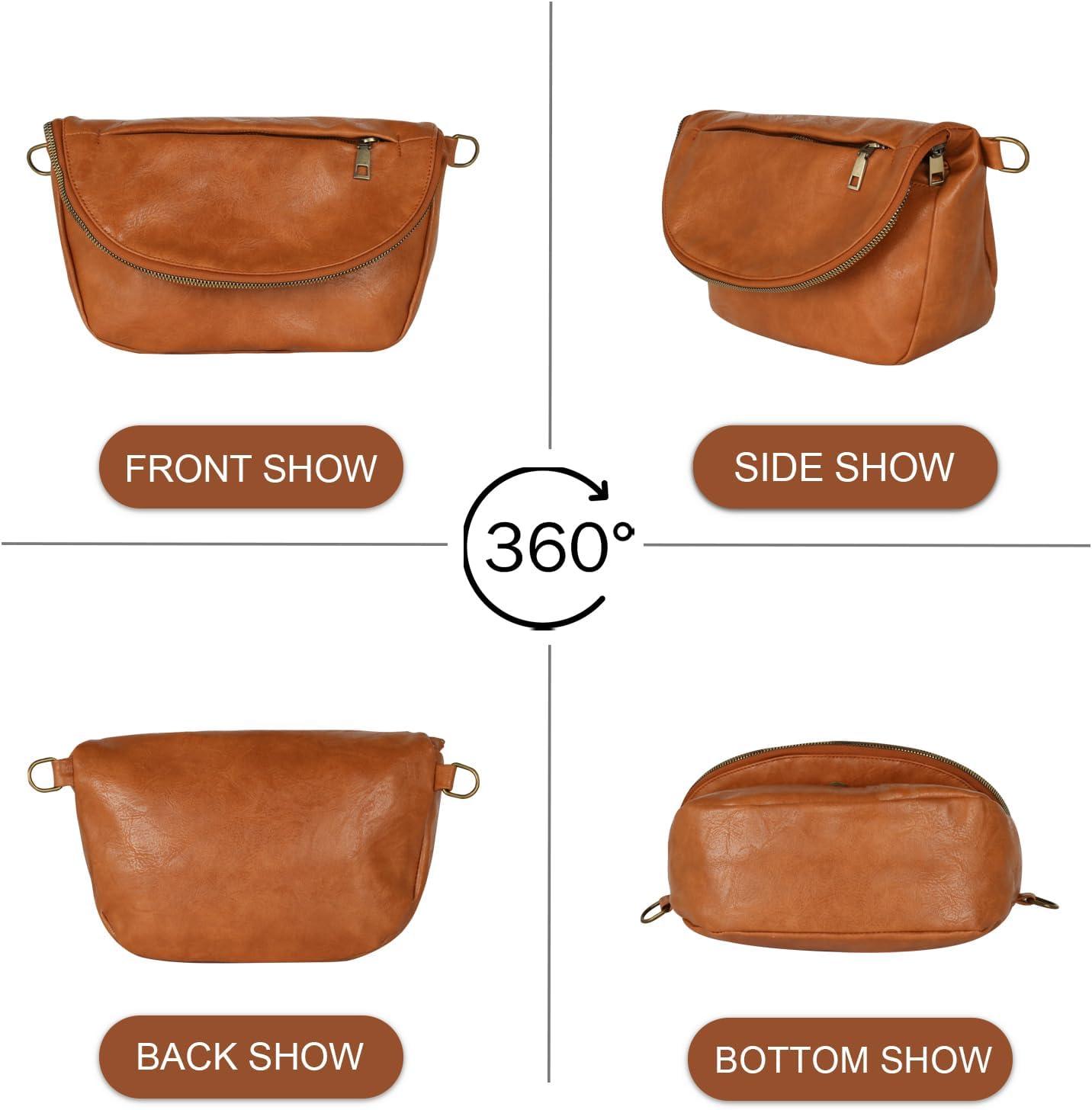 EXTREE crossbody Bags for Women,Trendy Shoulder Vegan Leather Handbags, Satchel Purse with Adjustable Wide Vintage Strap(Ag-brown)