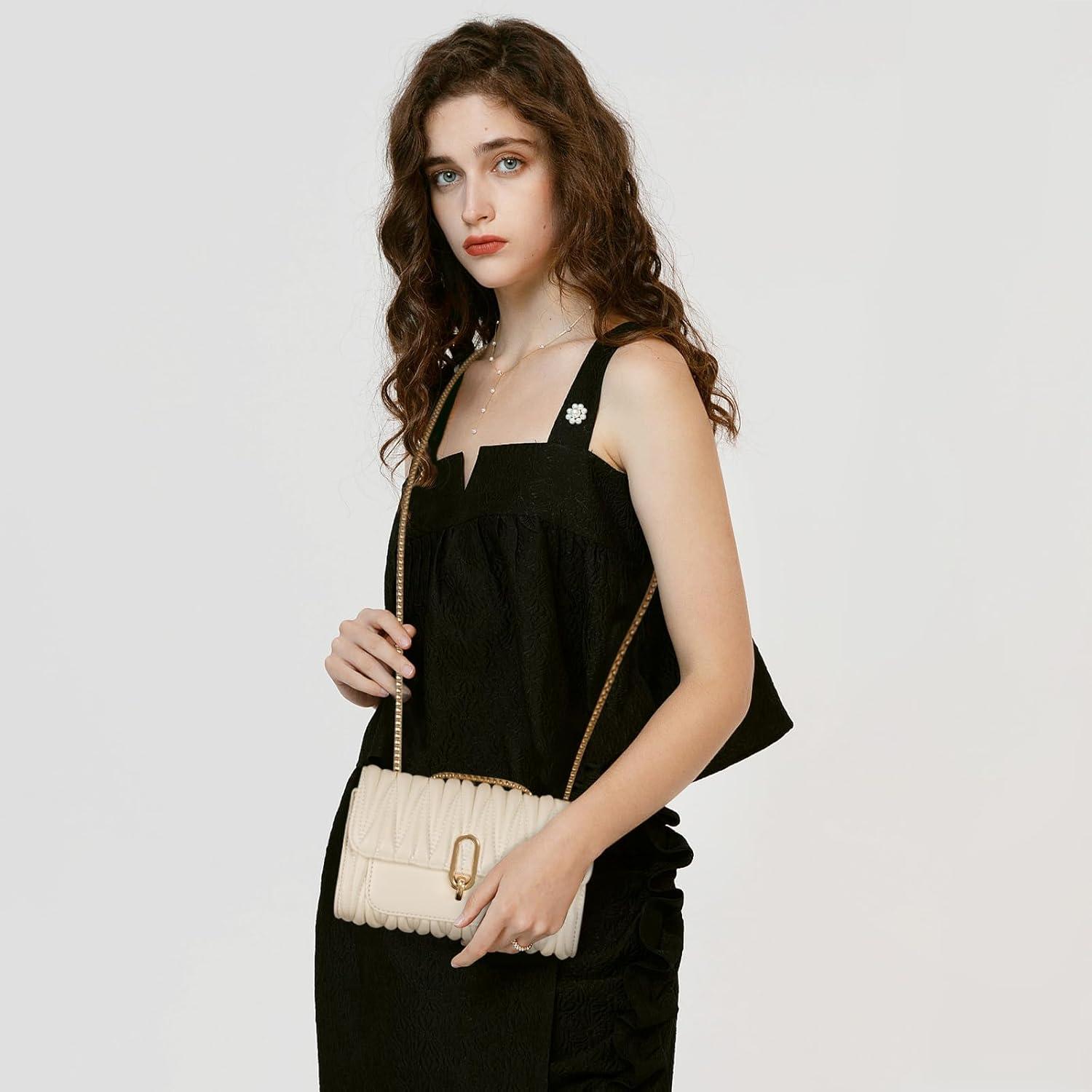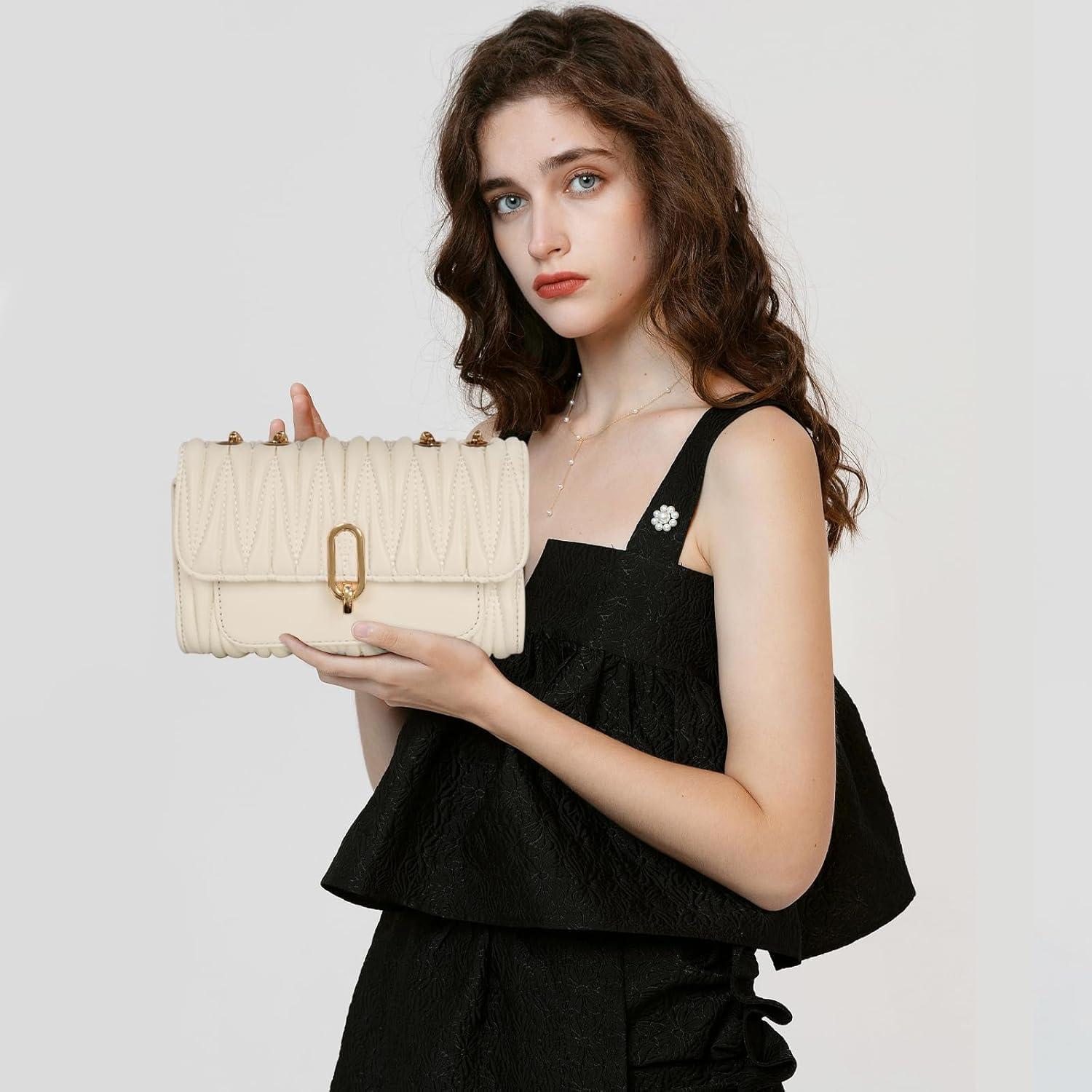 EXTREE crossbody Bags for Women,Trendy Shoulder Vegan Leather Handbags, Satchel Purse with Adjustable Wide Vintage Strap(Aj-beige-gold)