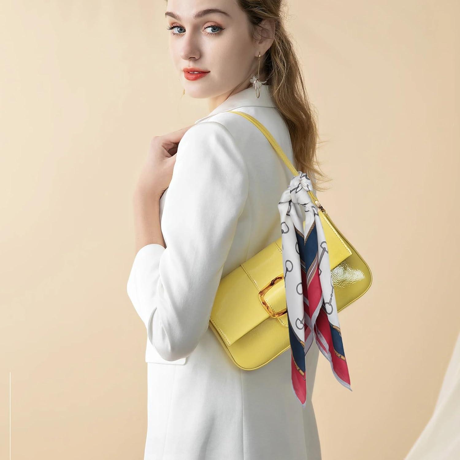 EXTREE Fashion Silky Satin Headscarf for Women Girls: Exquisite Pattern Lightweight Silk Graceful Scarfs 27.5 x 27.5 inches(Burgundy Edge Horseshoe Buckle)