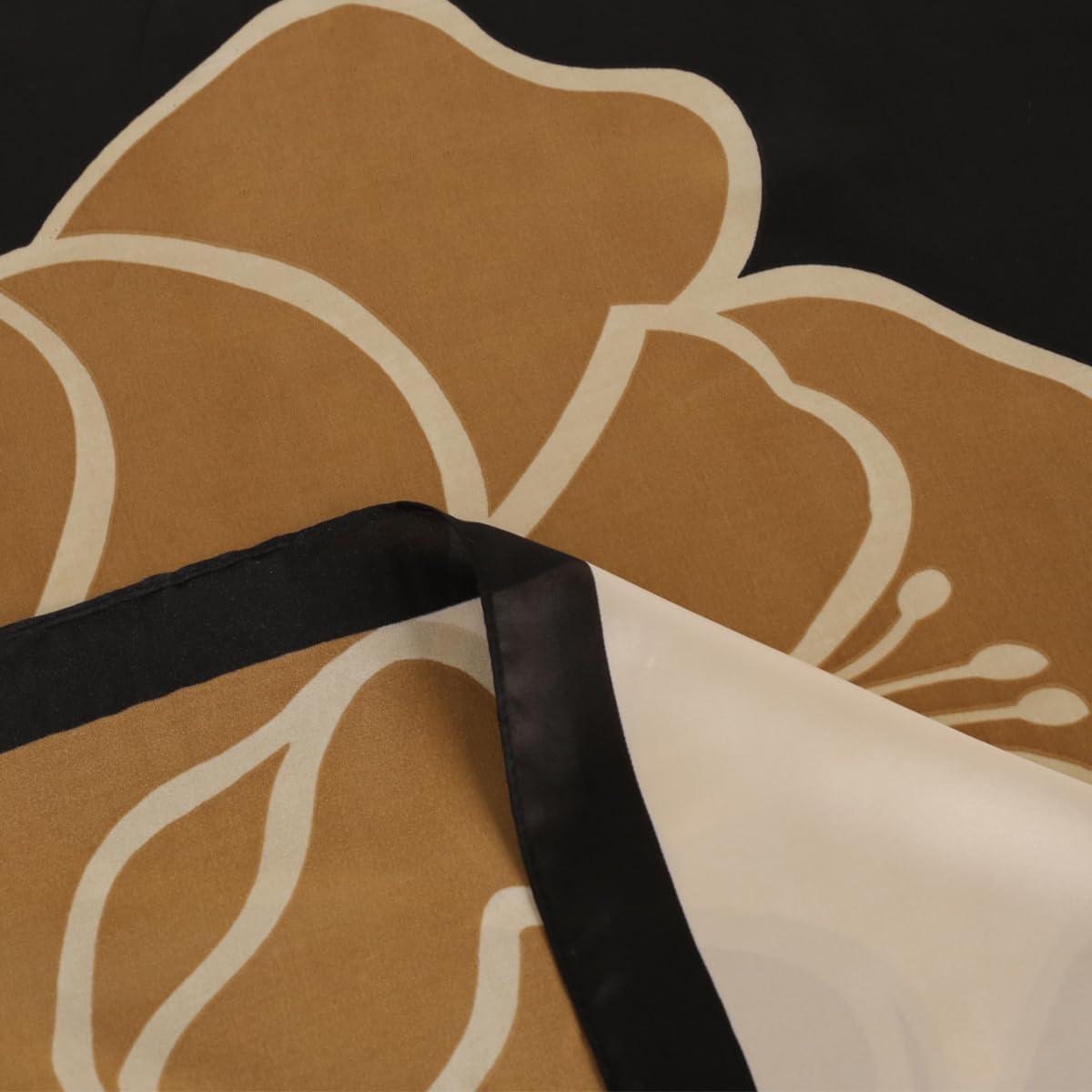 EXTREE Fashion Silky Satin Headscarf for Women Girls: Exquisite Pattern Lightweight Silk Graceful Scarfs 27.5 x 27.5 inches(Camellia Beige Black)