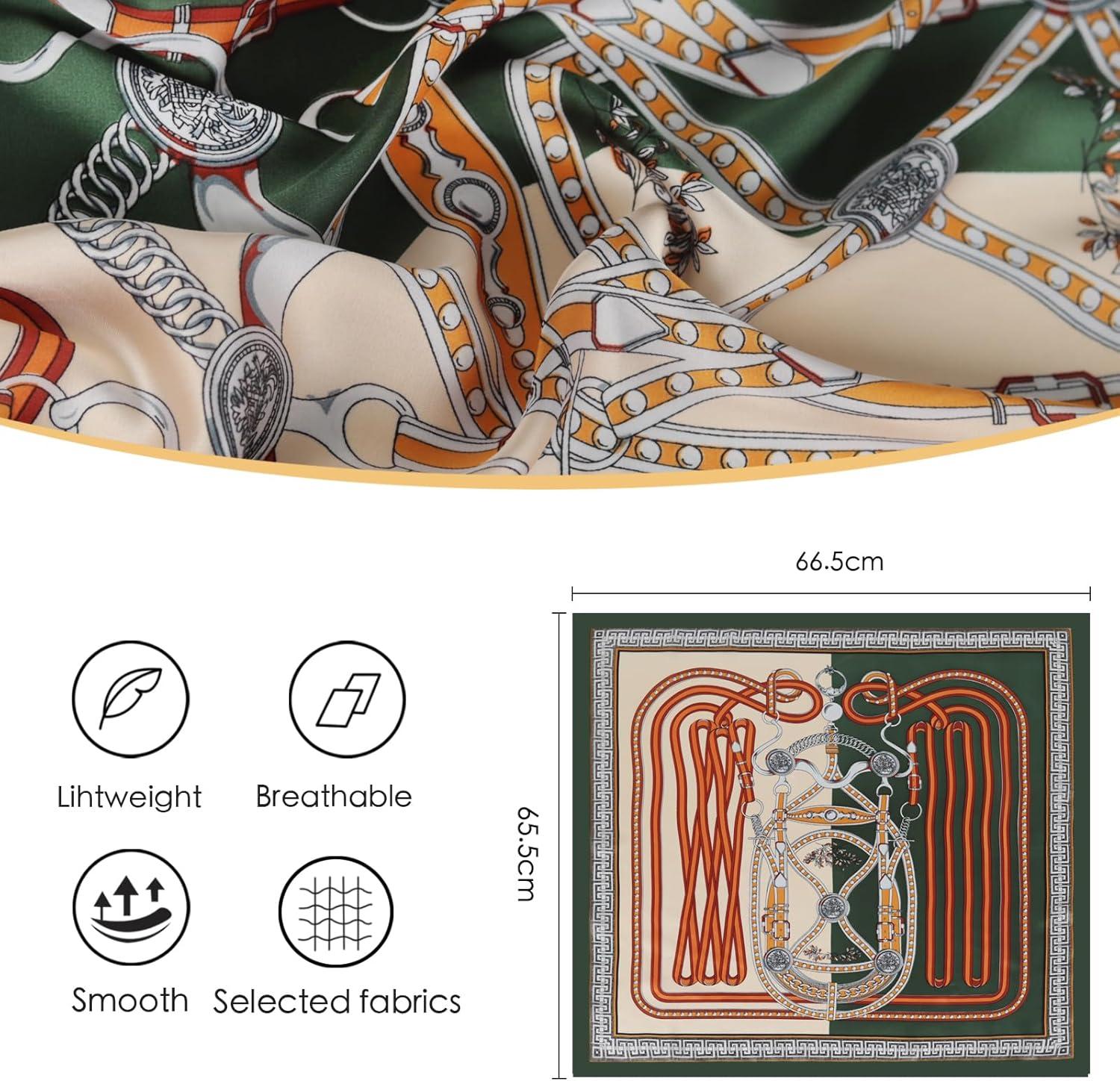 EXTREE Fashion Silky Satin Headscarf for Women Girls: Exquisite Pattern Lightweight Silk Graceful Scarfs 27.5 x 27.5 inches(Chain Great Wall Green)