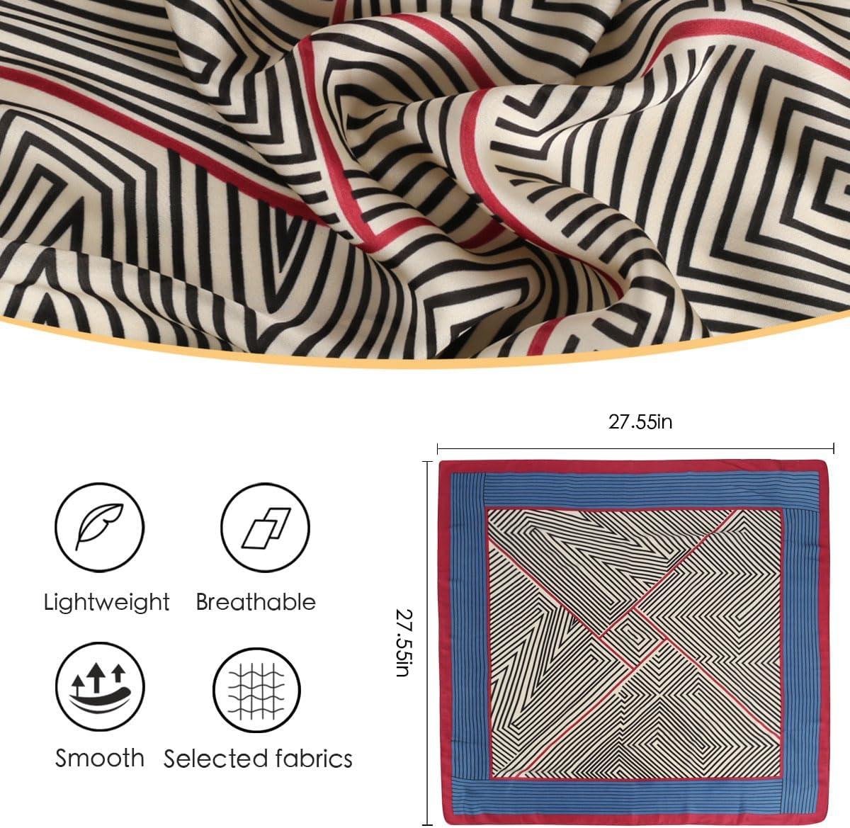 EXTREE Fashion Silky Satin Headscarf for Women Girls: Exquisite Pattern Lightweight Silk Graceful Scarfs 27.5 x 27.5 inches(Contrasting Stripes Blue and Red)