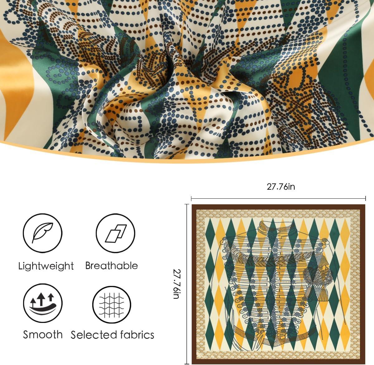 EXTREE Fashion Silky Satin Headscarf for Women Girls: Exquisite Pattern Lightweight Silk Graceful Scarfs 27.5 x 27.5 inches(Diamond Brown Edge)
