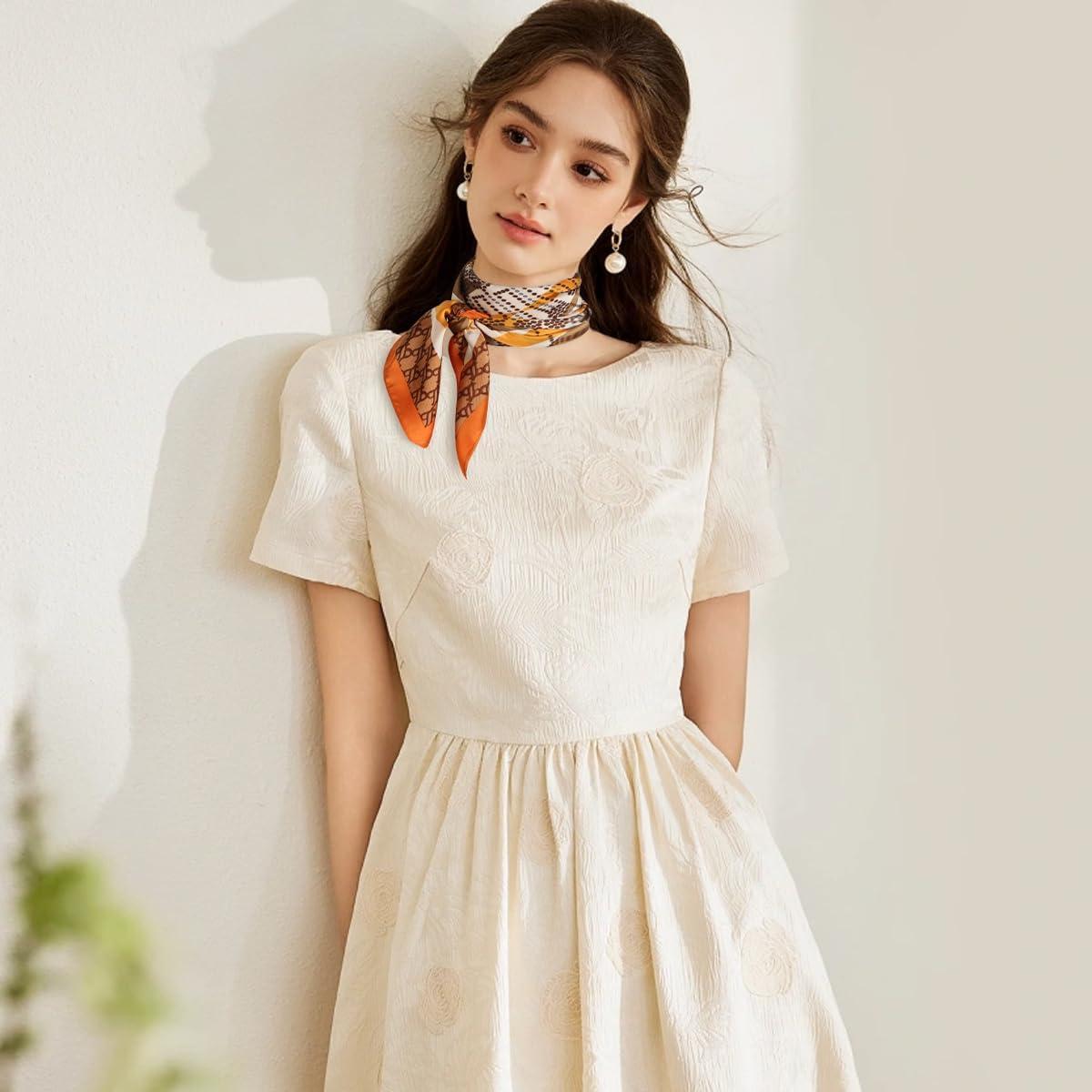 EXTREE Fashion Silky Satin Headscarf for Women Girls: Exquisite Pattern Lightweight Silk Graceful Scarfs 27.5 x 27.5 inches(Diamond Orange Edge)