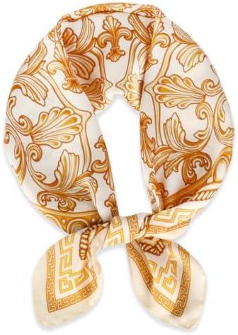 EXTREE Fashion Silky Satin Headscarf for Women Girls: Exquisite Pattern Lightweight Silk Graceful Scarfs 27.5 x 27.5 inches(Flower Vine White Background)