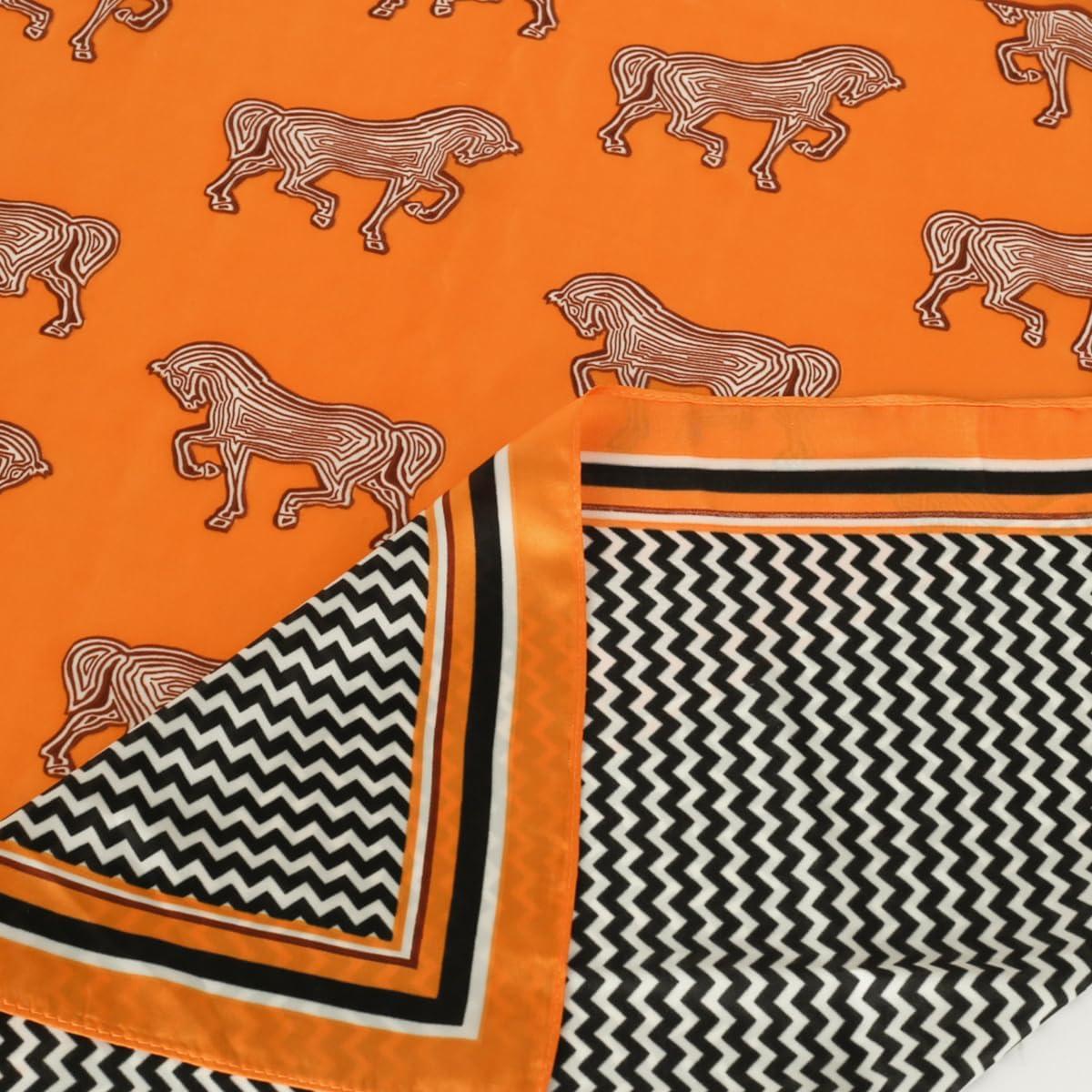 EXTREE Fashion Silky Satin Headscarf for Women Girls: Exquisite Pattern Lightweight Silk Graceful Scarfs 27.5 x 27.5 inches(Herringbone Carriage Orange Frame)