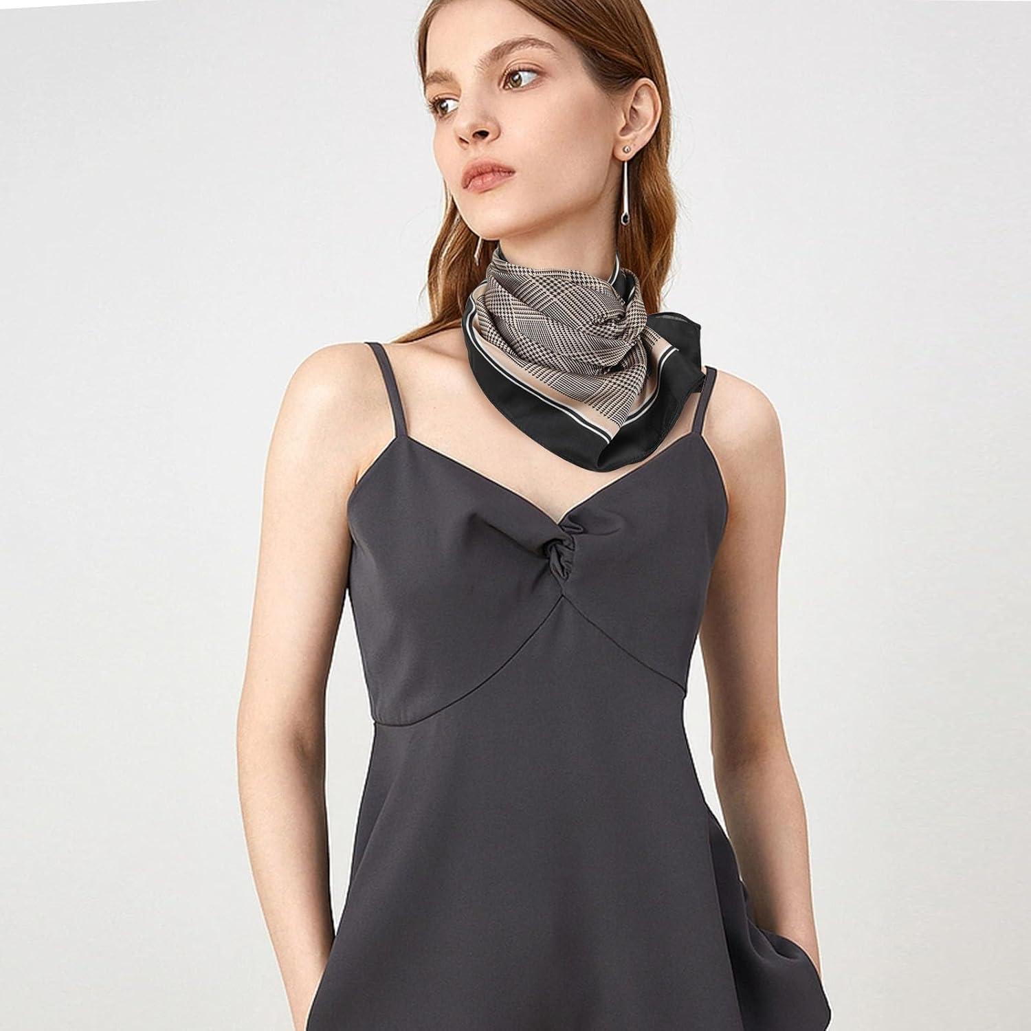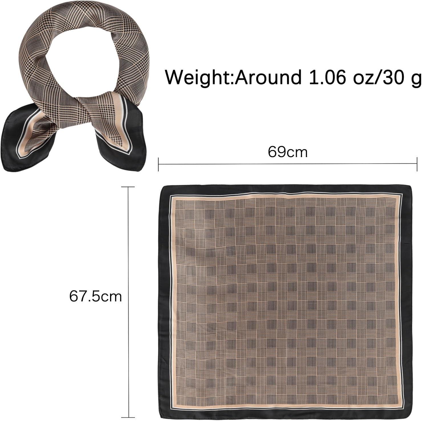 EXTREE Fashion Silky Satin Headscarf for Women Girls: Exquisite Pattern Lightweight Silk Graceful Scarfs 27.5 x 27.5 inches(Houndstooth Copper)