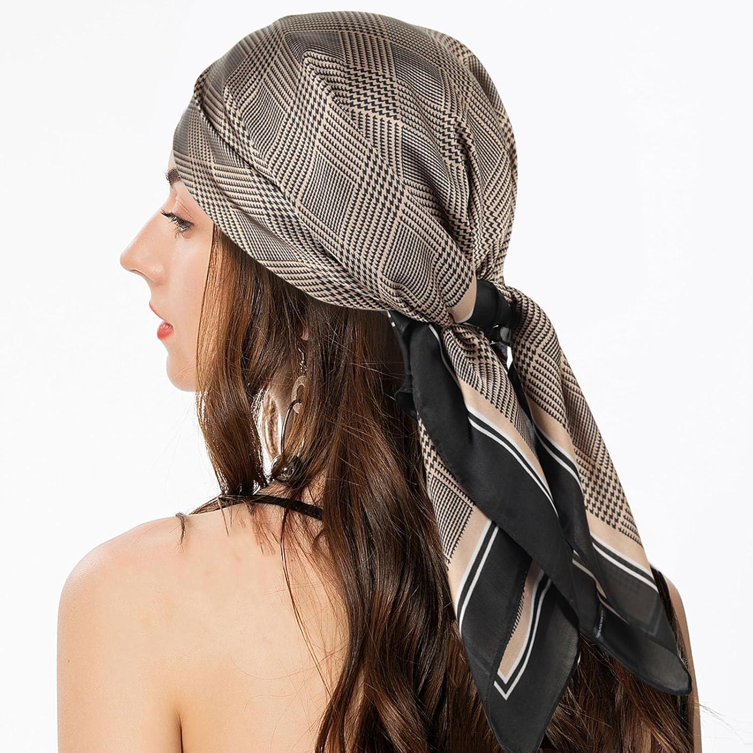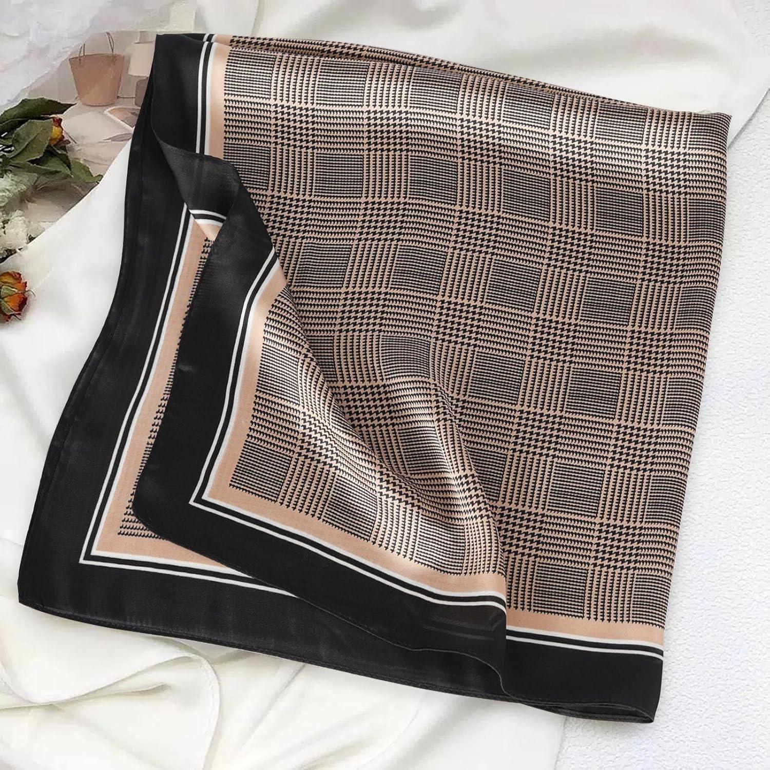 EXTREE Fashion Silky Satin Headscarf for Women Girls: Exquisite Pattern Lightweight Silk Graceful Scarfs 27.5 x 27.5 inches(Houndstooth Horse Beige)