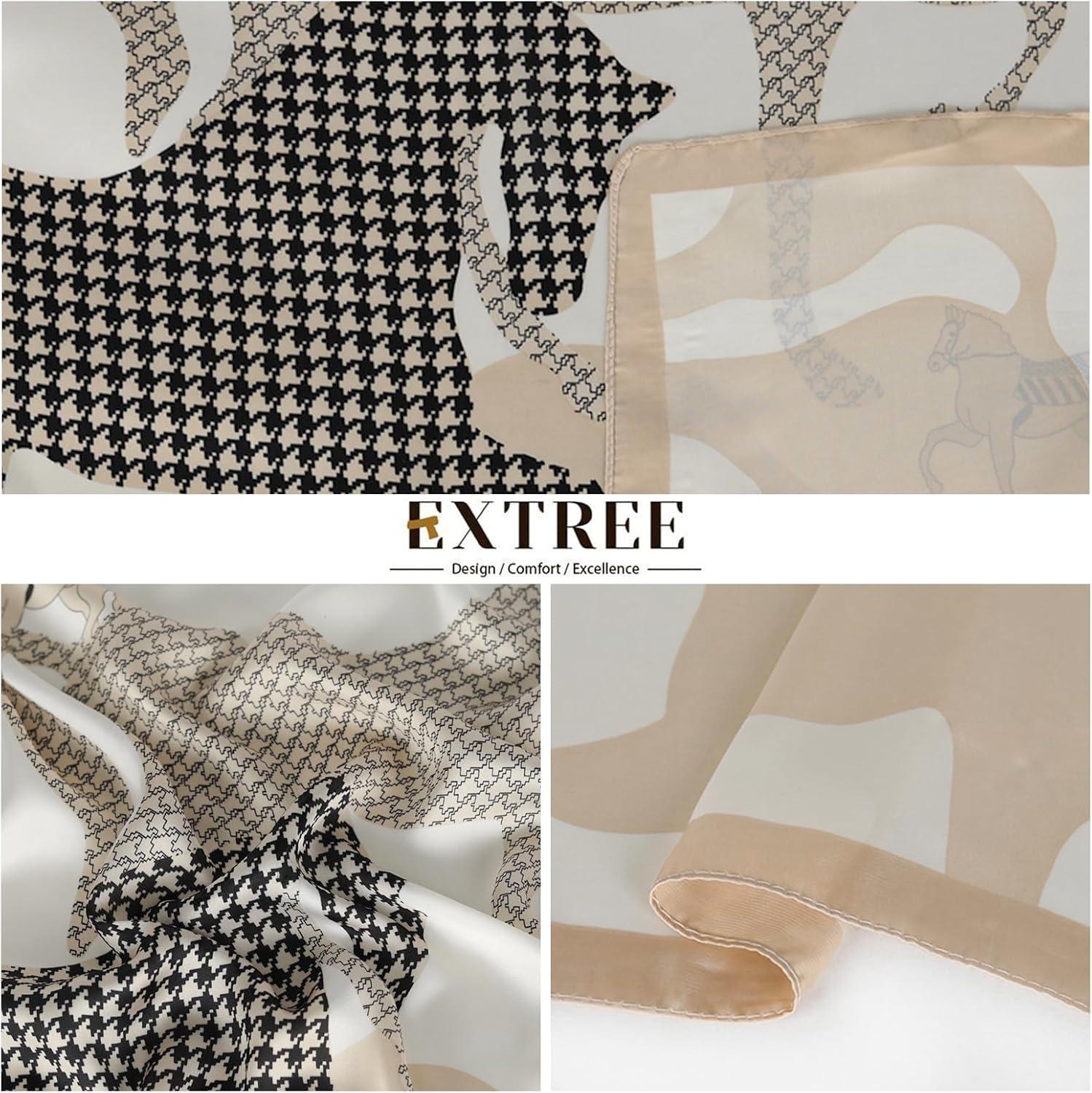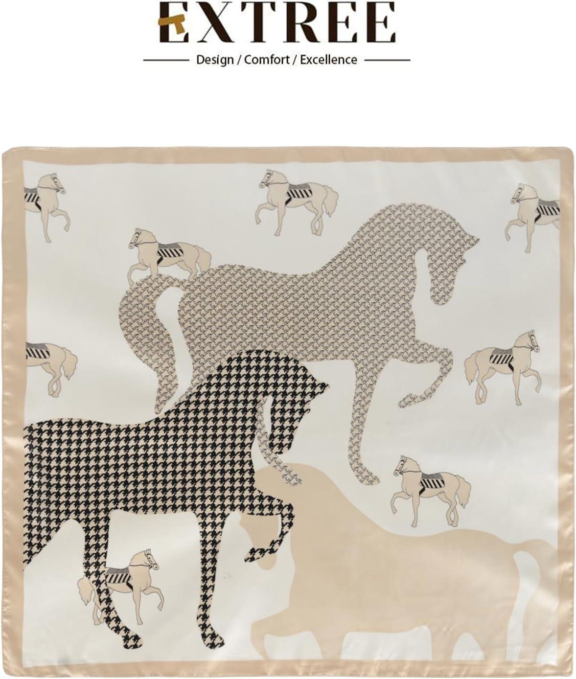 EXTREE Fashion Silky Satin Headscarf for Women Girls: Exquisite Pattern Lightweight Silk Graceful Scarfs 27.5 x 27.5 inches(Houndstooth Horse Beige)