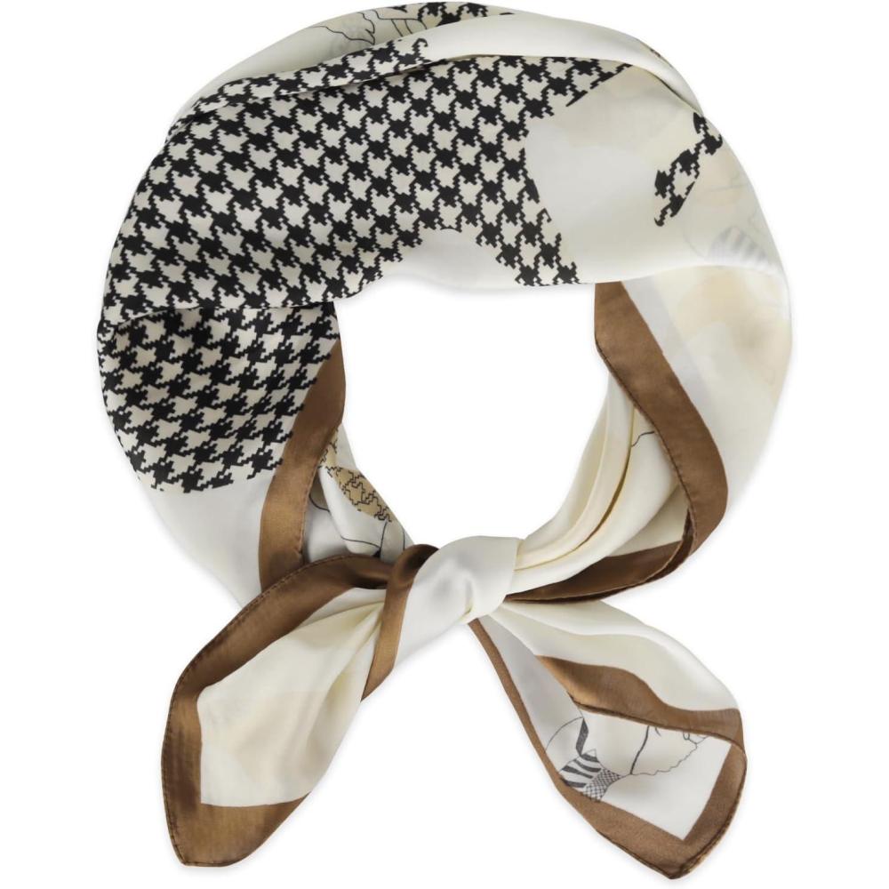 EXTREE Fashion Silky Satin Headscarf for Women Girls: Exquisite Pattern Lightweight Silk Graceful Scarfs 27.5 x 27.5 inches(Khaki Stylish)