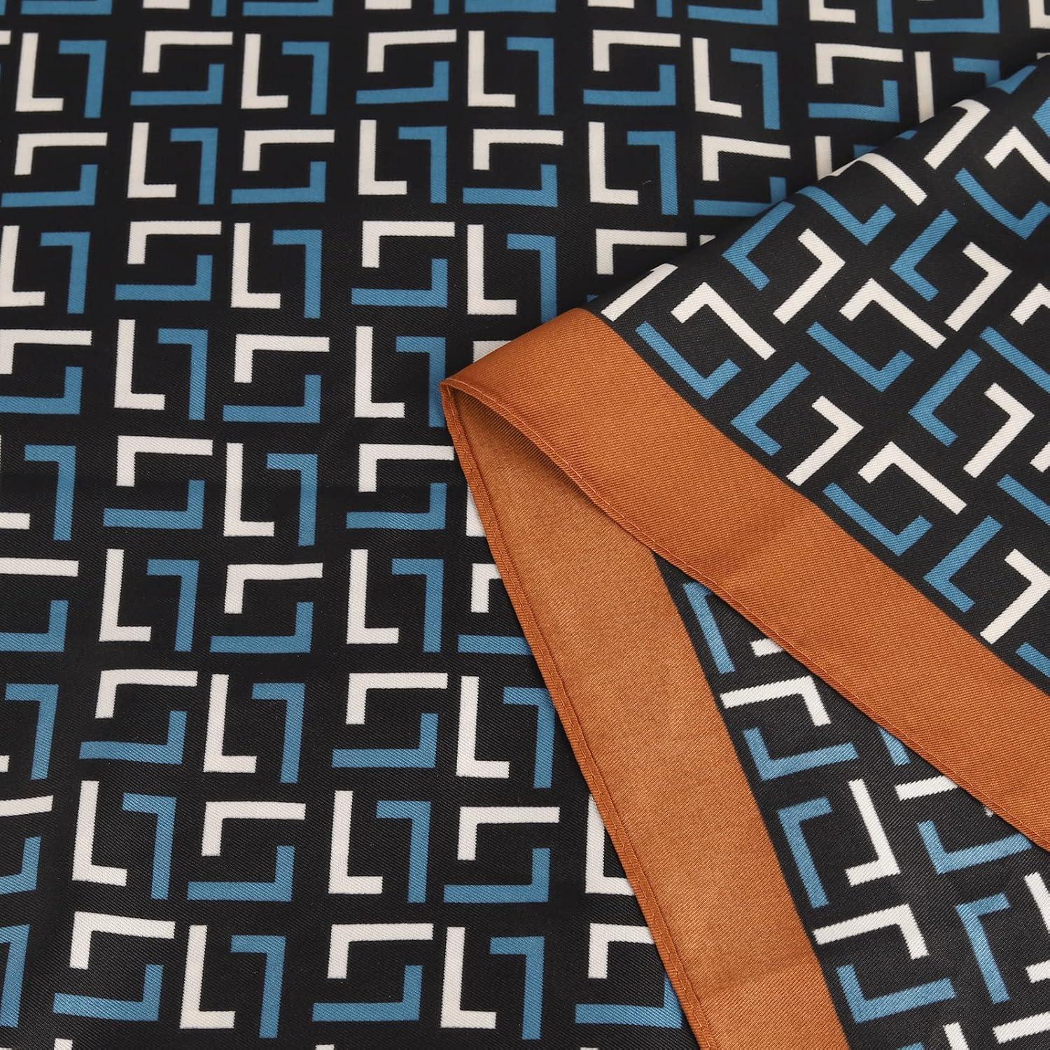 EXTREE Fashion Silky Satin Headscarf for Women Girls: Exquisite Pattern Lightweight Silk Graceful Scarfs 27.5 x 27.5 inches(L Shaped Blue)