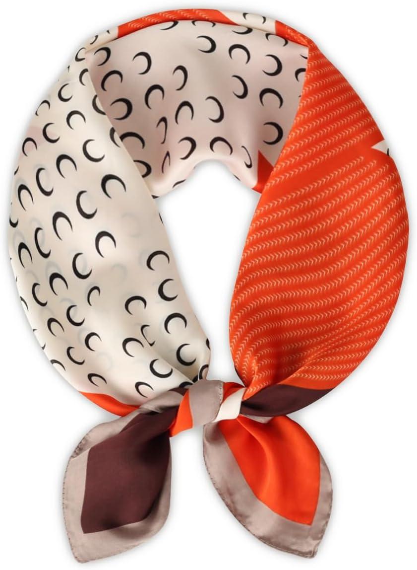 EXTREE Fashion Silky Satin Headscarf for Women Girls: Exquisite Pattern Lightweight Silk Graceful Scarfs 27.5 x 27.5 inches(Orange Coffee Moon)
