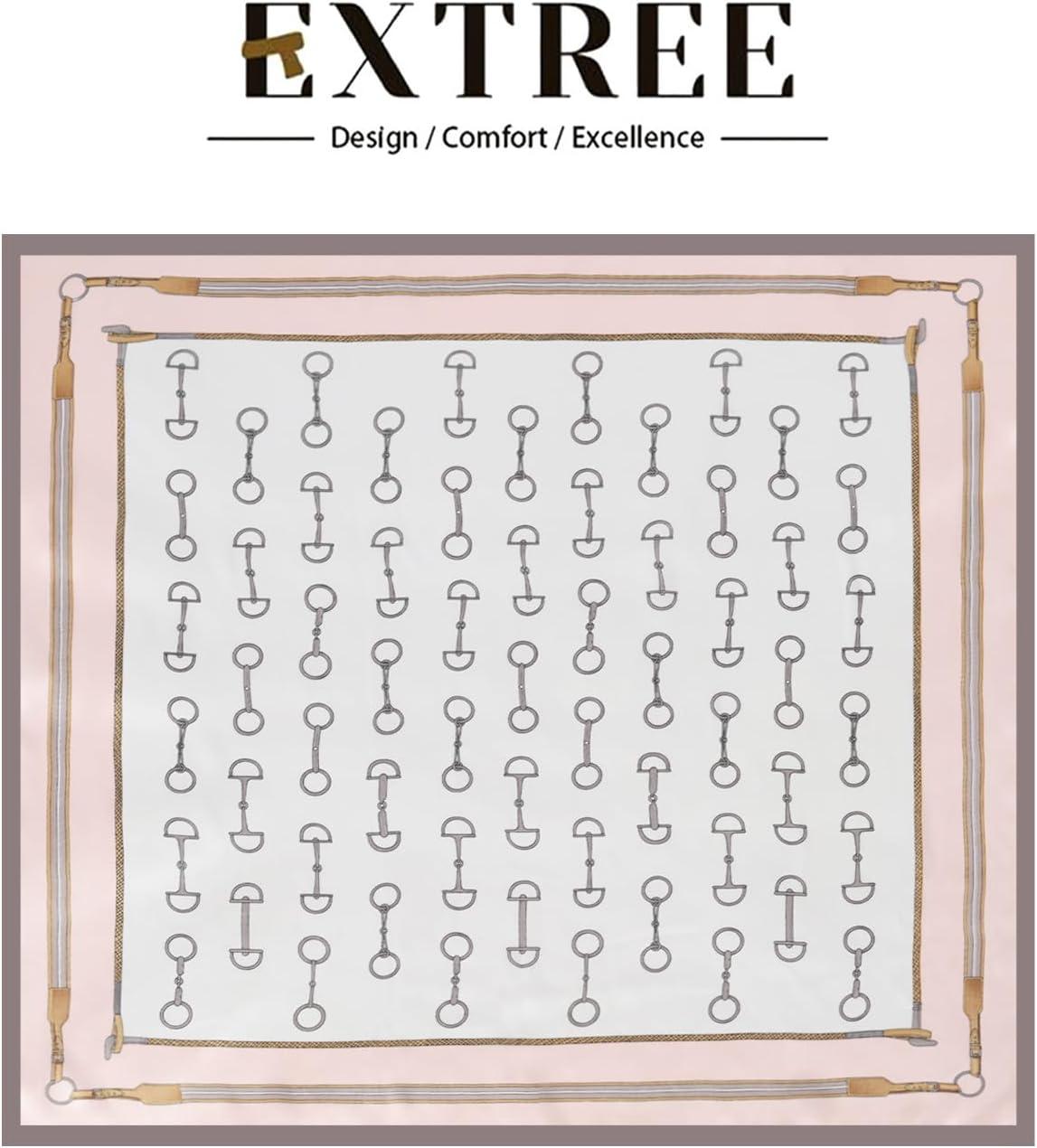EXTREE Fashion Silky Satin Headscarf for Women Girls: Exquisite Pattern Lightweight Silk Graceful Scarfs 27.5 x 27.5 inches(Pink Edge Horseshoe Buckle)