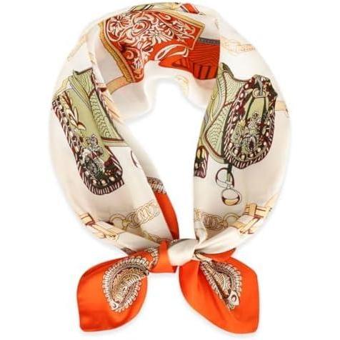 imageEXTREE Fashion Silky Satin Headscarf for Women Girls Exquisite Pattern Lightweight Silk Graceful Scarfs 275 x 275 inchesSaddle Leather Buckle Orange