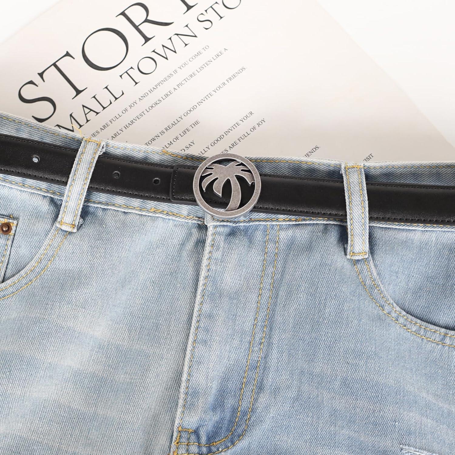 EXTREE Gold Buckle Belts for Women, Fashion Waist Band, Elegant Ladies' Belt, Gift for Women,Ideal for Dresses, Jeans(Black Belt Silver Round Buckle)