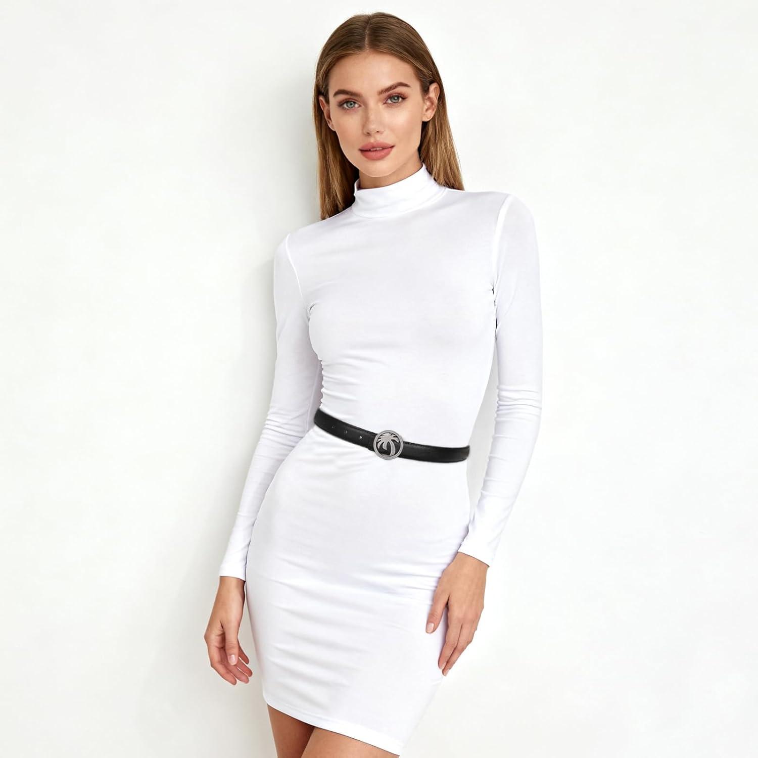 imageEXTREE Gold Buckle Belts for Women Fashion Waist Band Elegant Ladies Belt Gift for WomenIdeal for Dresses JeansBlack Belt Silver Round Buckle