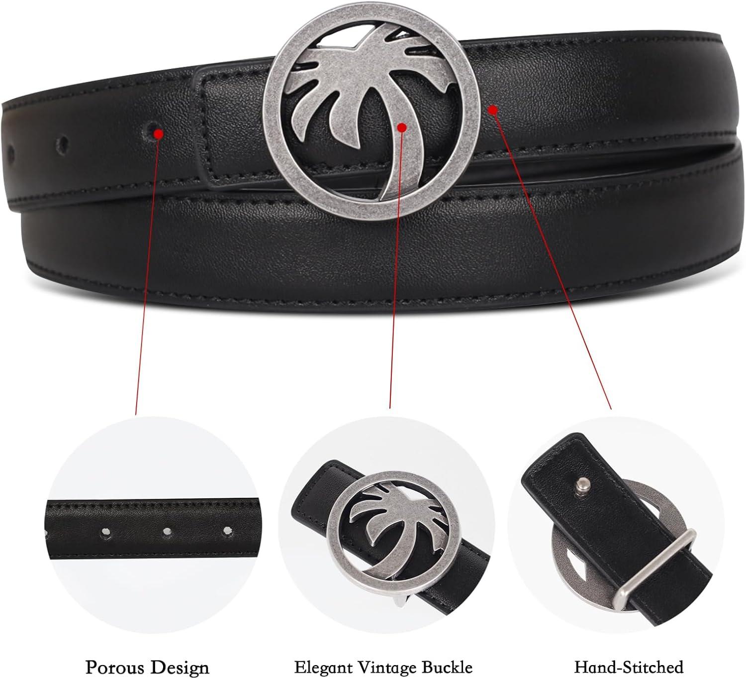 EXTREE Gold Buckle Belts for Women, Fashion Waist Band, Elegant Ladies’ Belt, Gift for Women,Ideal for Dresses, Jeans(Black Belt Silver Round Buckle)