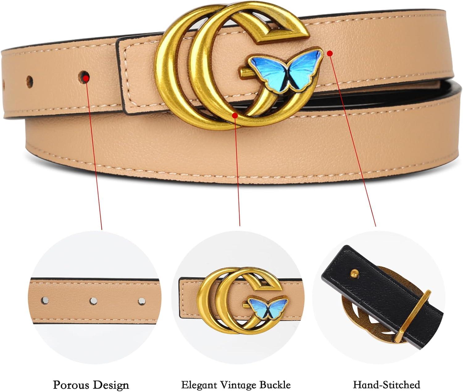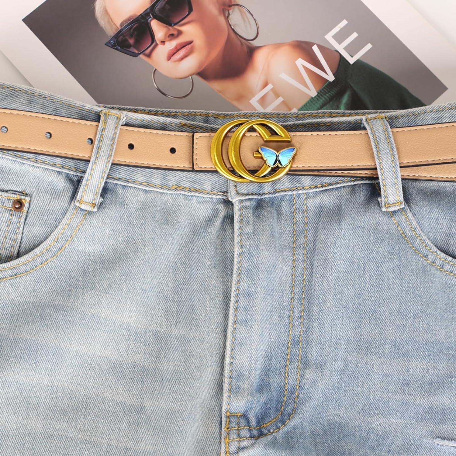 EXTREE Gold Buckle Belts for Women, Fashion Waist Band, Elegant Ladies' Belt, Gift for Women,Ideal for Dresses, Jeans(Gold Butterfly Buckle Light Khaki Leather)