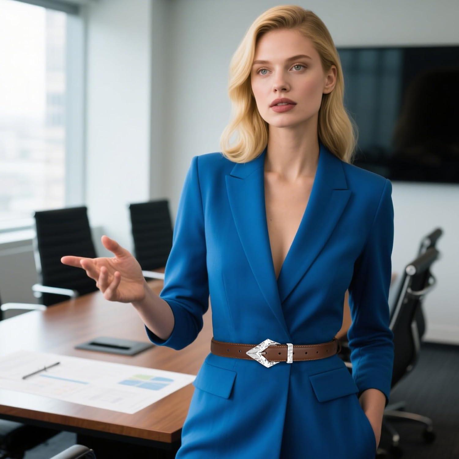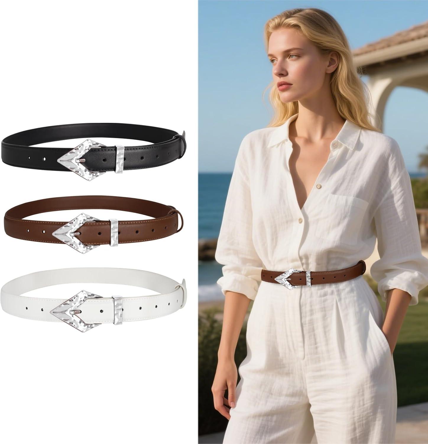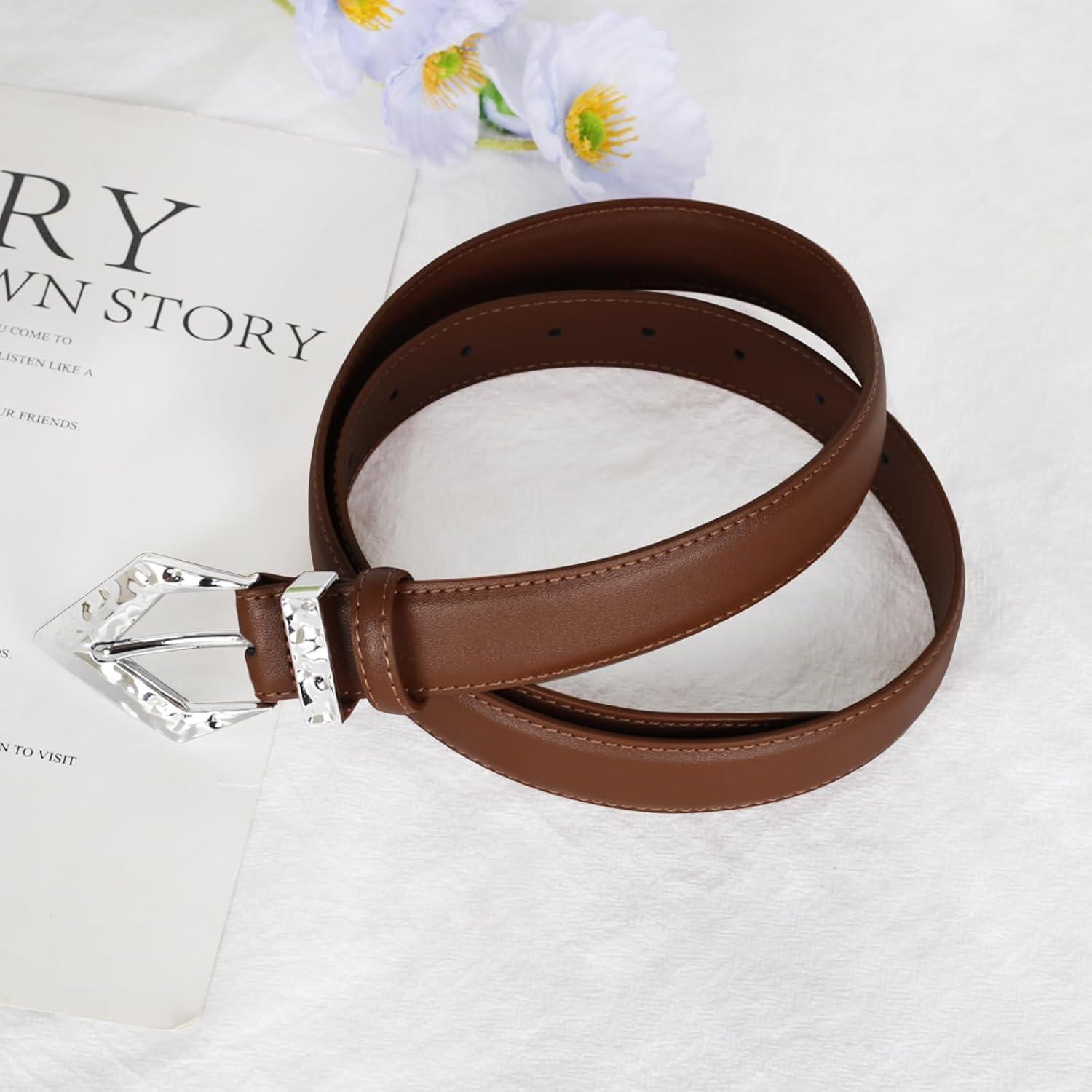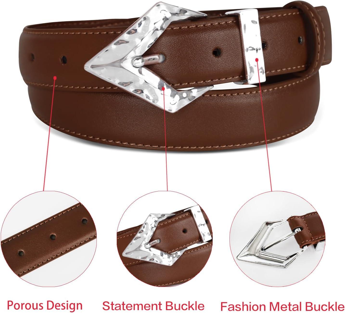 EXTREE Gold Buckle Belts for Women, Fashion Waist Band, Elegant Ladies' Belt, Gift for Women,Ideal for Dresses, Jeans(Leather Belt With Silver Geometric Buckle)