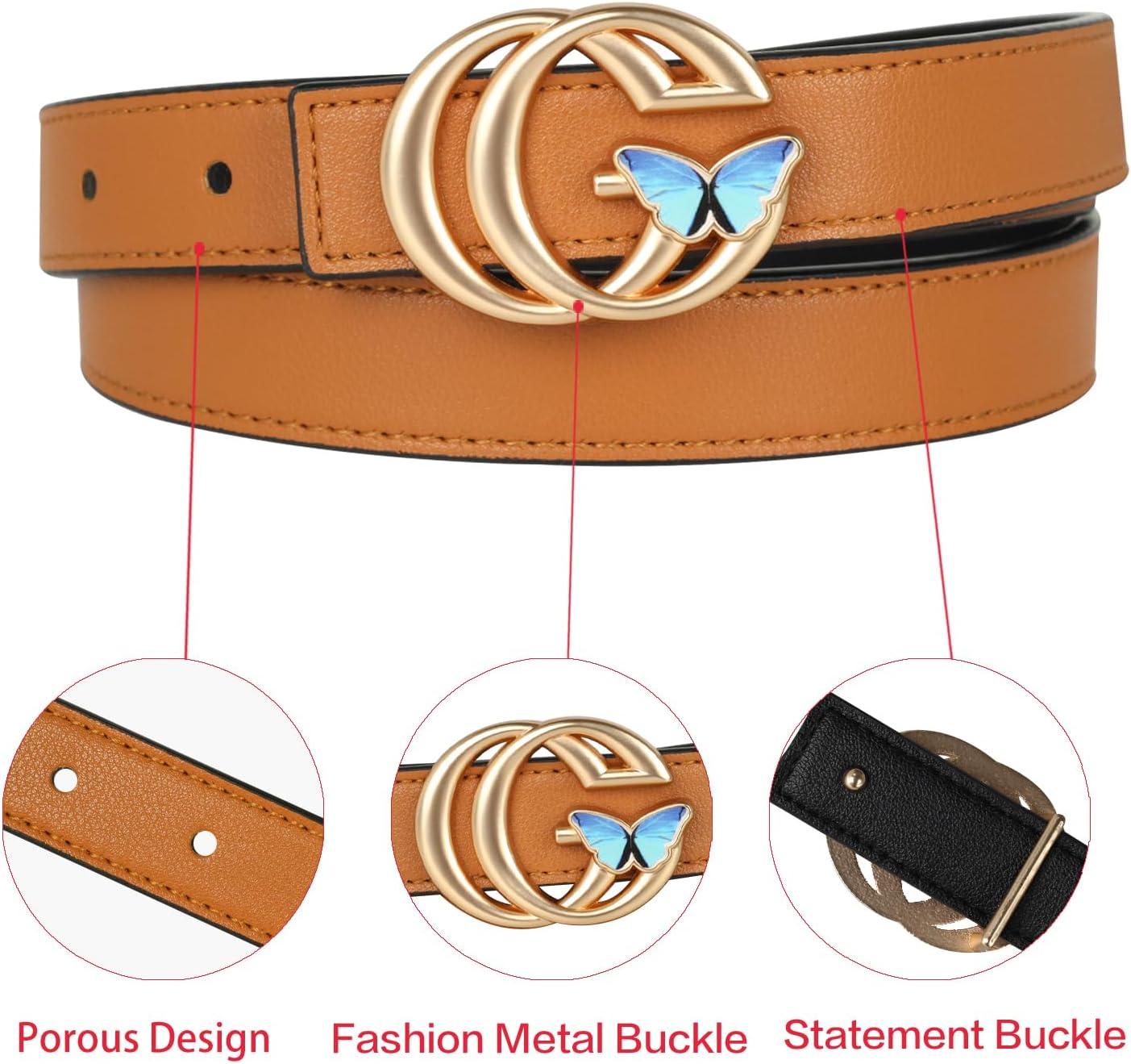 EXTREE Gold Buckle Belts for Women, Fashion Waist Band, Elegant Ladies’ Belt, Gift for Women,Ideal for Dresses, Jeans(Light Gold Butterfly Clasp – Burgundy Leather)