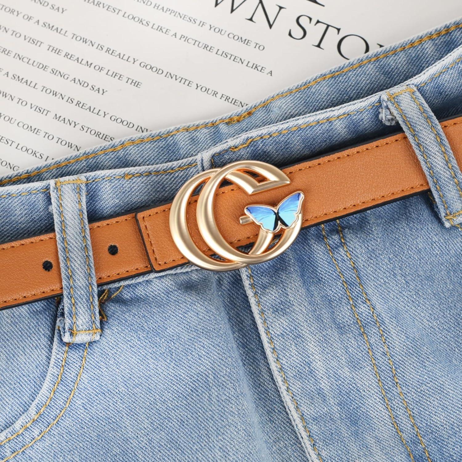 EXTREE Gold Buckle Belts for Women, Fashion Waist Band, Elegant Ladies' Belt, Gift for Women,Ideal for Dresses, Jeans(Light Golden Buckle)