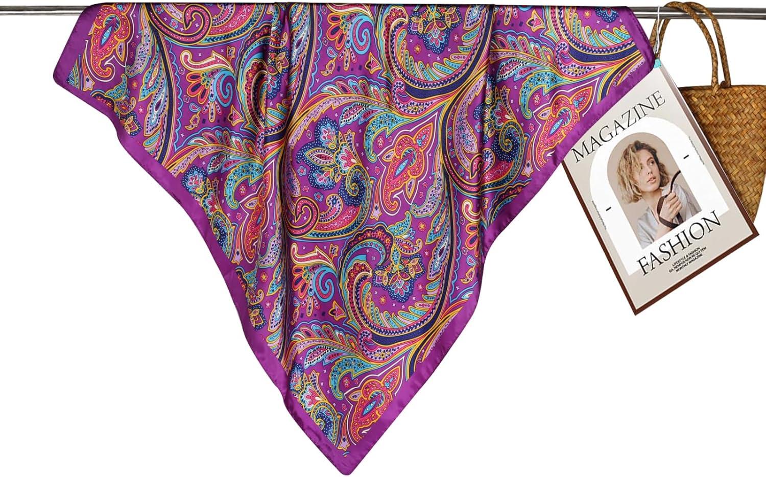 EXTREE Head Scarf for Women Like Silk Scarf Hair Scarf Printed Square Scarf Bandanas for Women 35 Inches(Bohemian Purple)