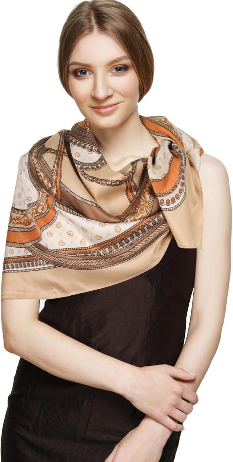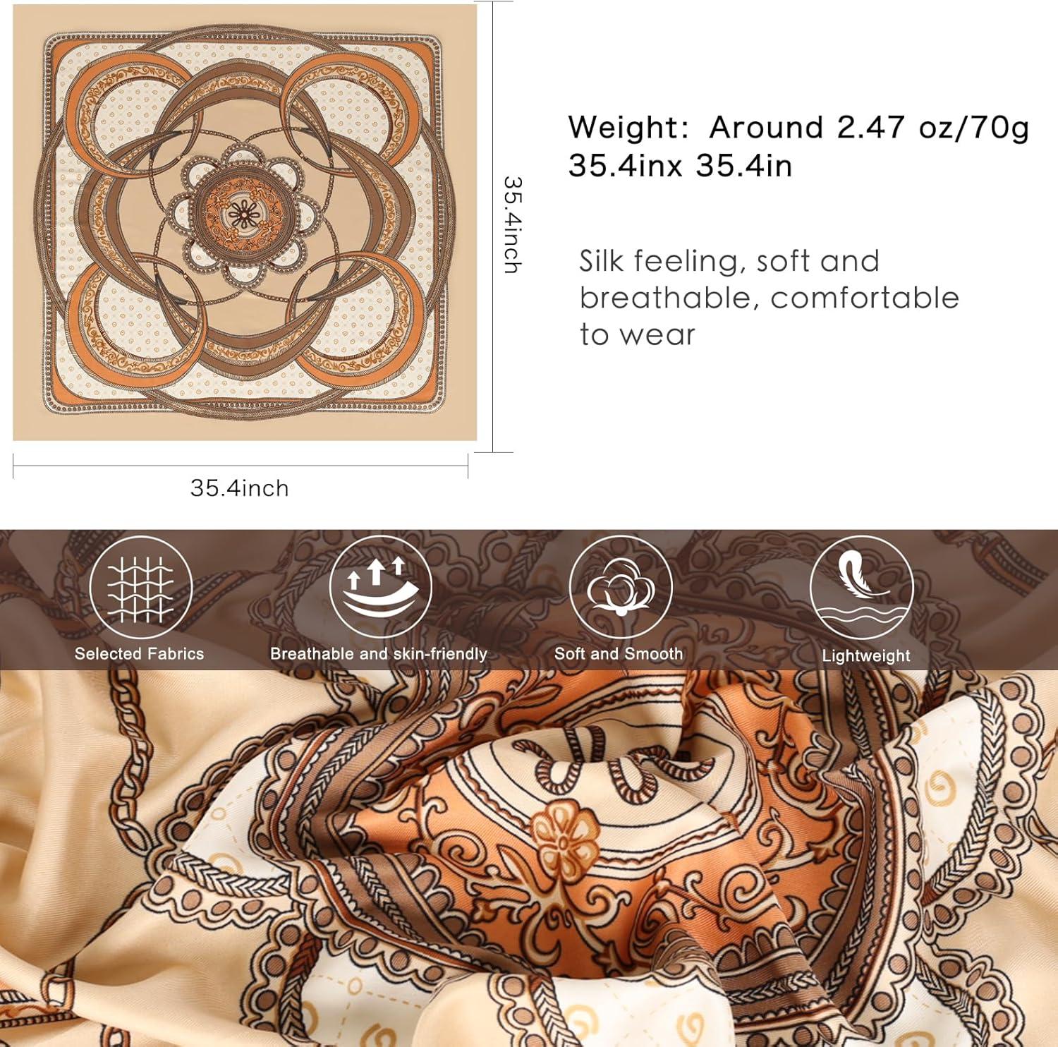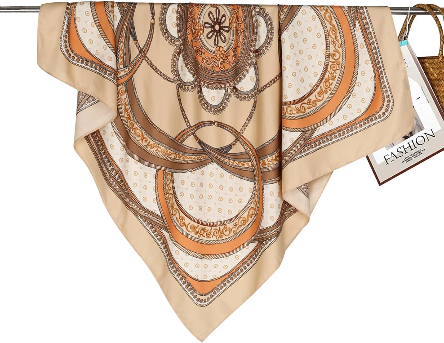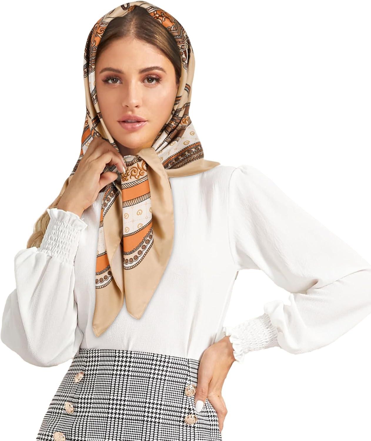 EXTREE Head Scarf for Women Like Silk Scarf Hair Scarf Printed Square Scarf Bandanas for Women 35 Inches(Retro Geometric Khaki)