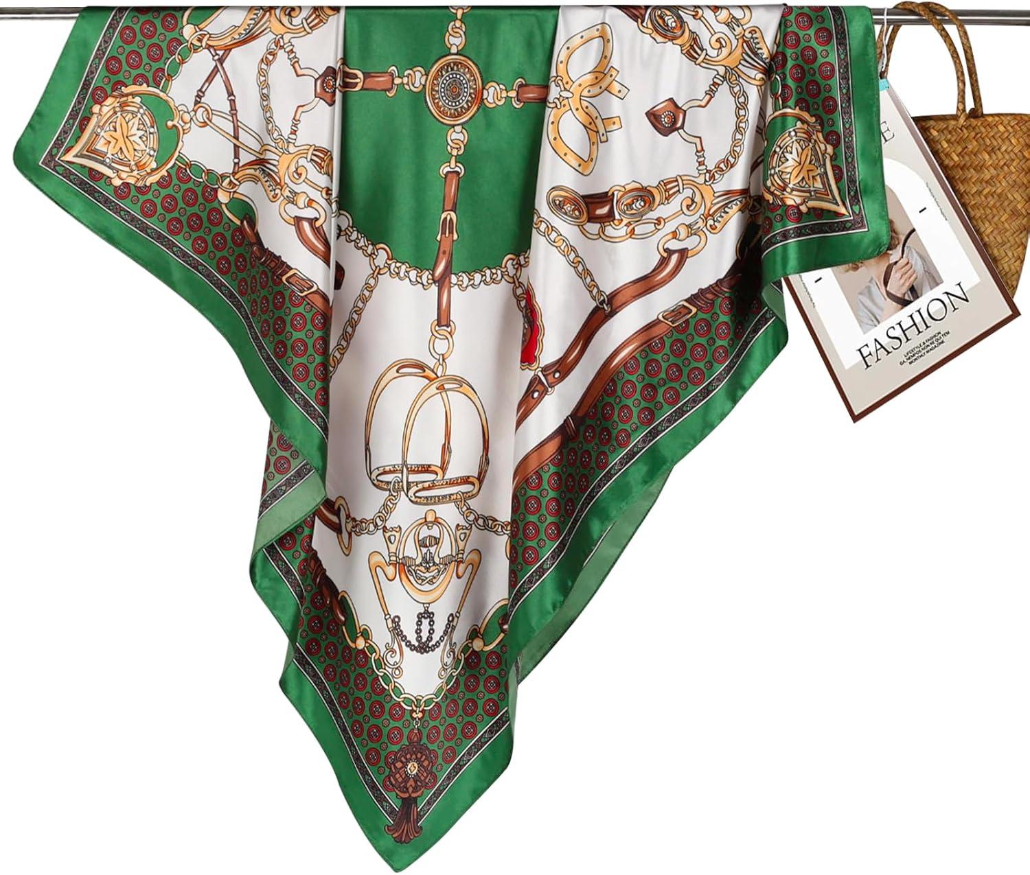 EXTREE Luxury Satin Head Scarf 35x35 - Silk-like Wrap for Women, Versatile Shawl/Sun Cover/Wrapping, Premium Gift for Her(Emerald Green)