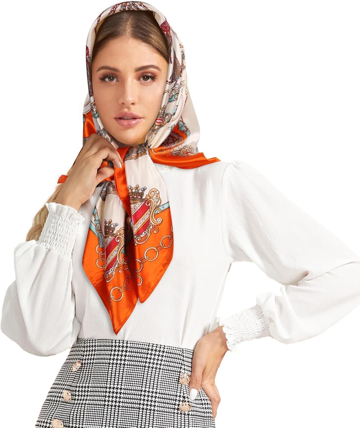 EXTREE Luxury Satin Head Scarf 35x35 - Silk-like Wrap for Women, Versatile Shawl/Sun Cover/Wrapping, Premium Gift for Her(Fashionable Carriage Orange)