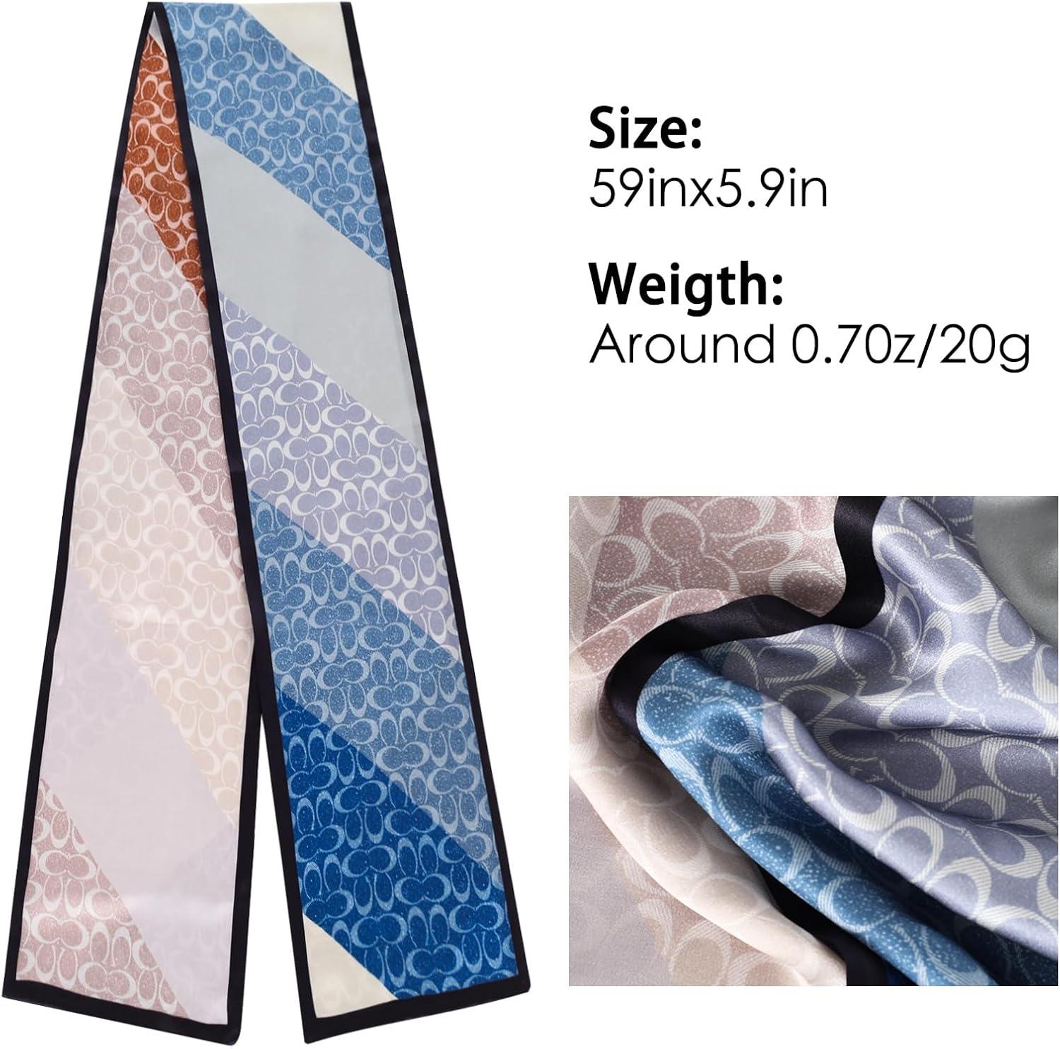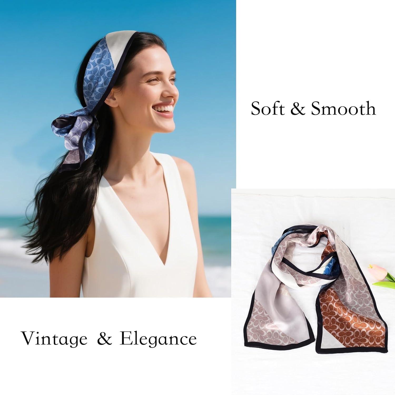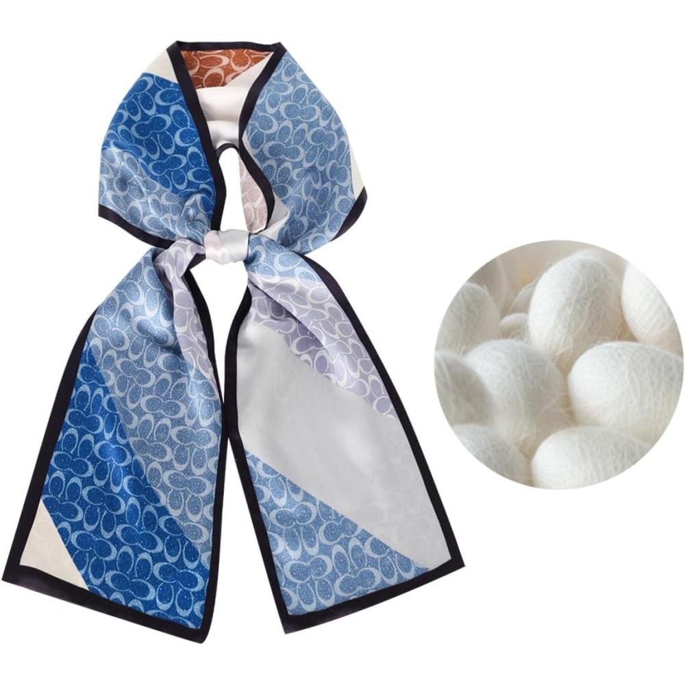 EXTREE Satin Scarf 100% Mulberry Silk Printed Head Wrap Hair Band 5.9″” x 57″”(Blue and Brown Horseshoe)