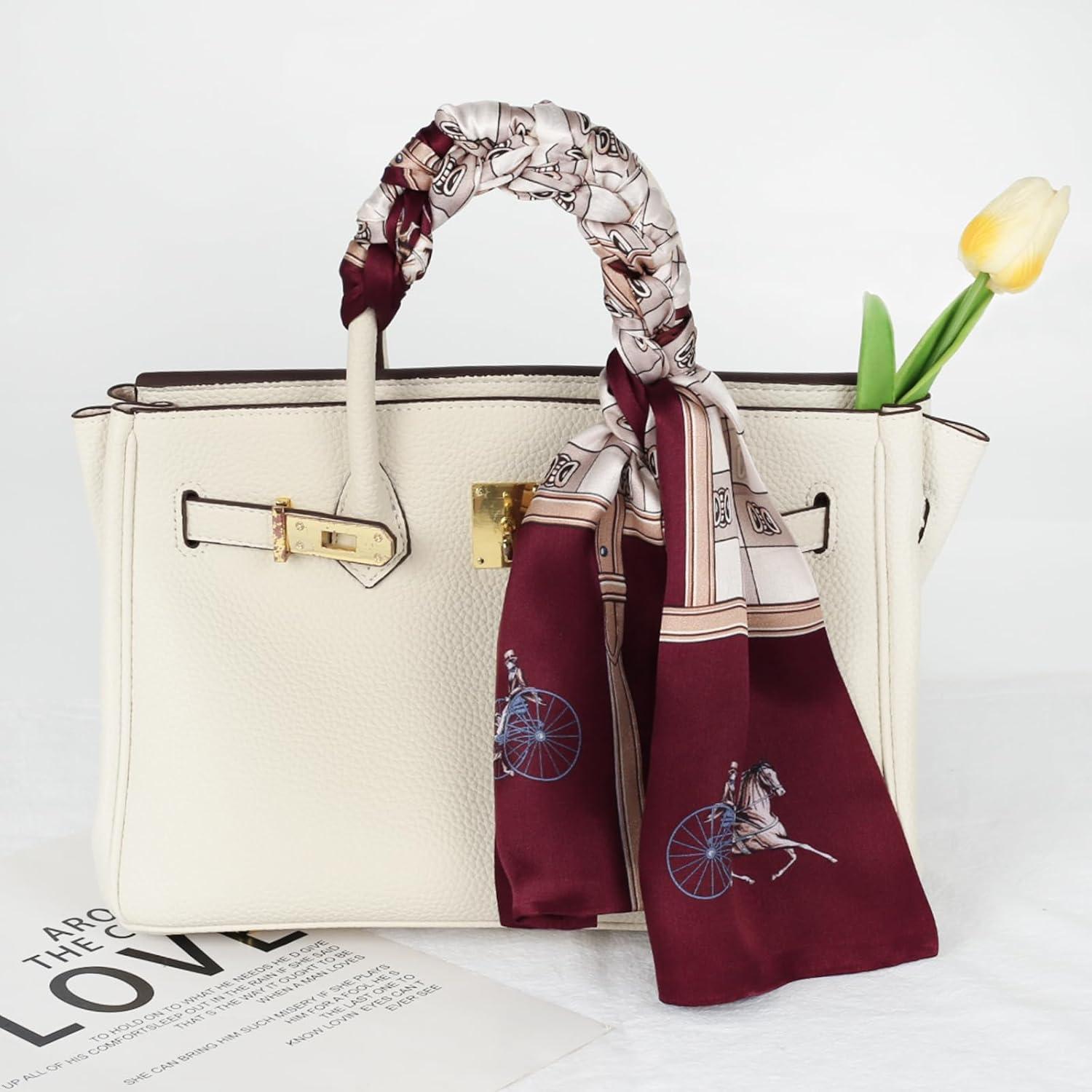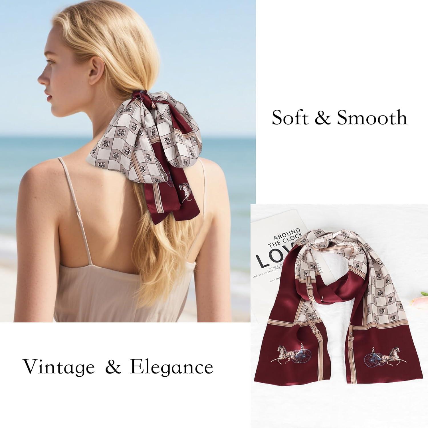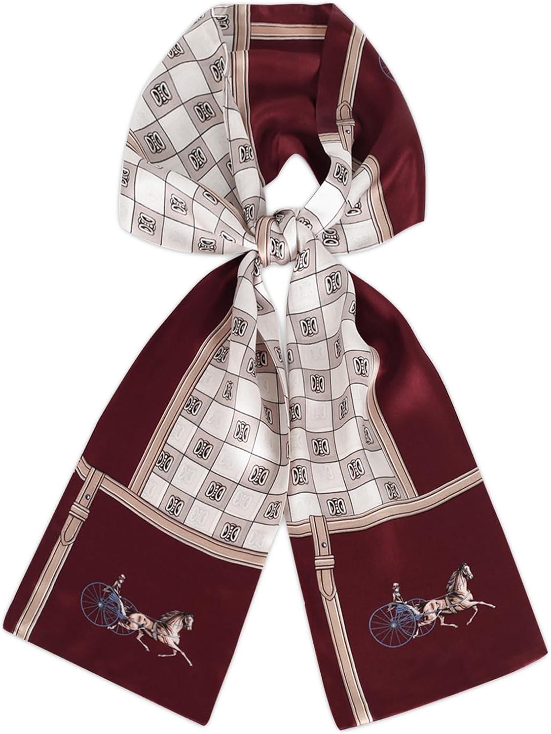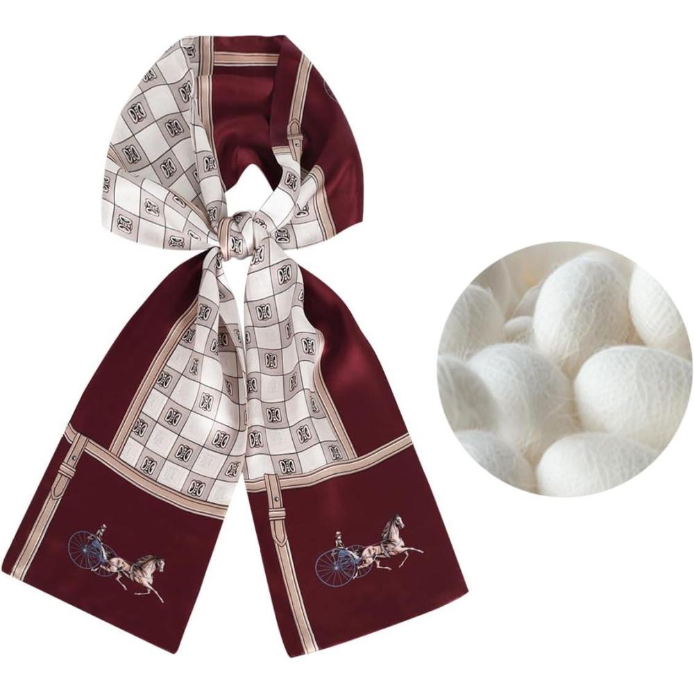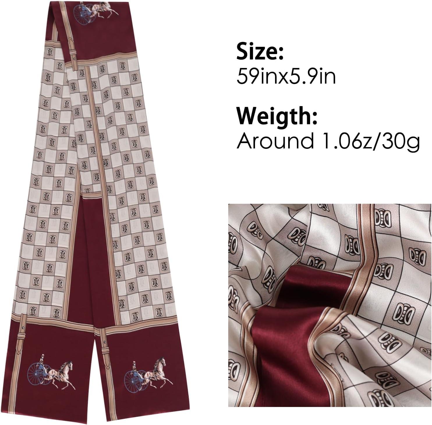 EXTREE Satin Scarf 100% Mulberry Silk Printed Head Wrap Hair Band 5.9″” x 57″”(Chain Waltz Silk and Wool Ribbon)