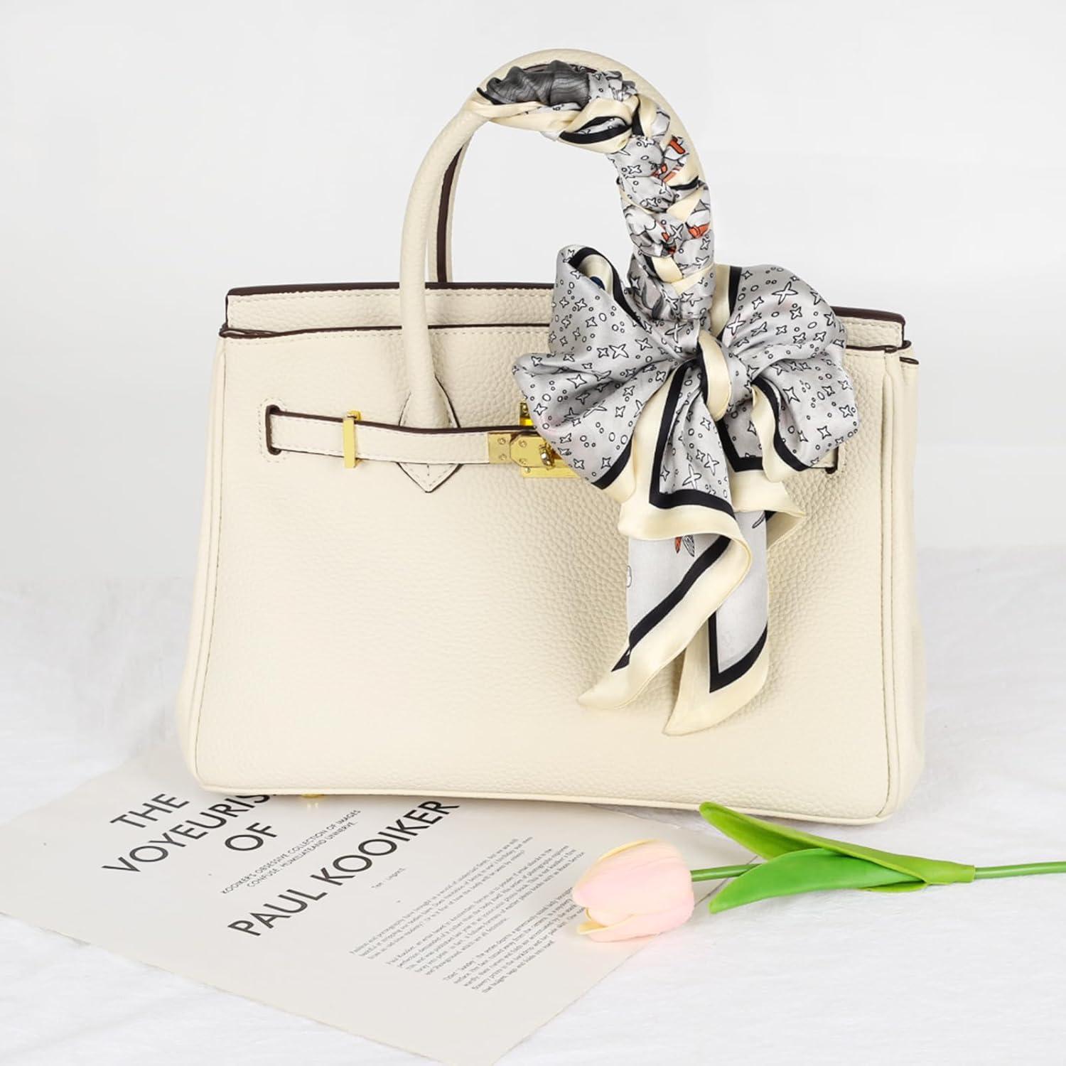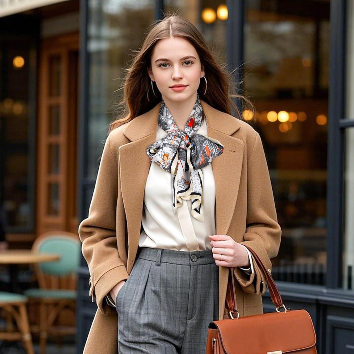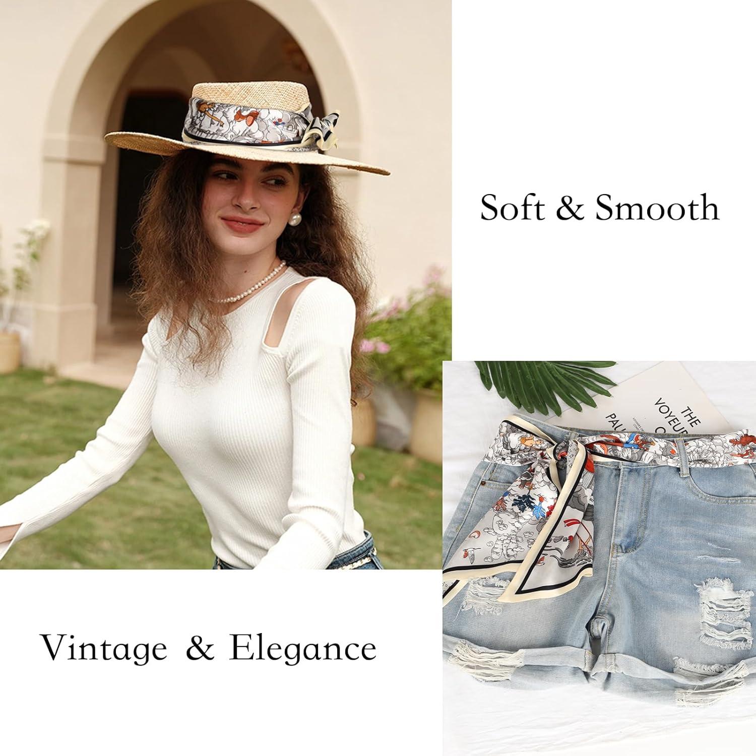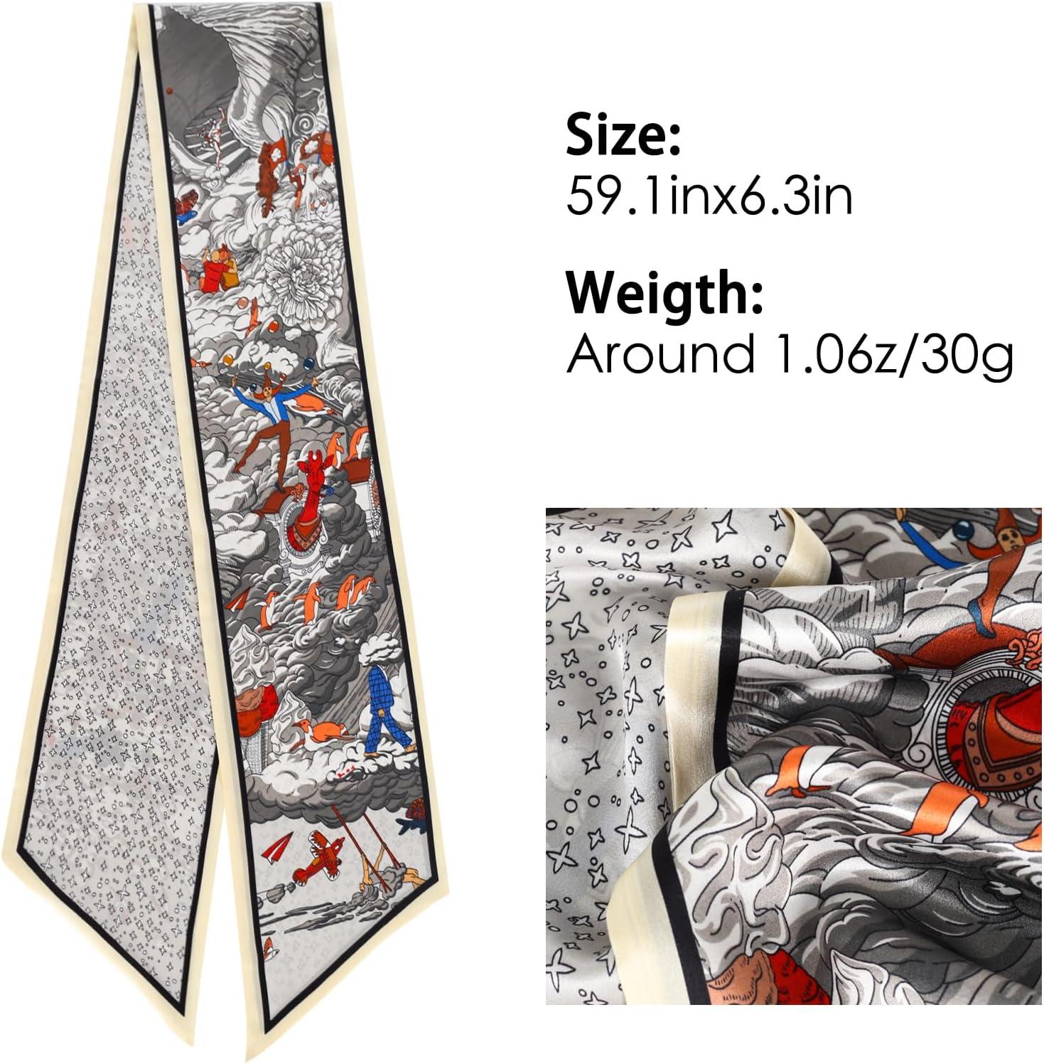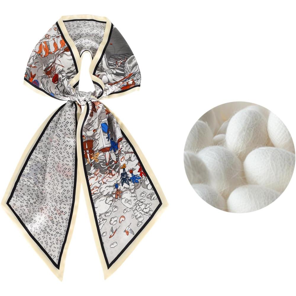 EXTREE Satin Scarf 100% Mulberry Silk Printed Head Wrap Hair Band 5.9″” x 57″”(Cloud Gray Beige)