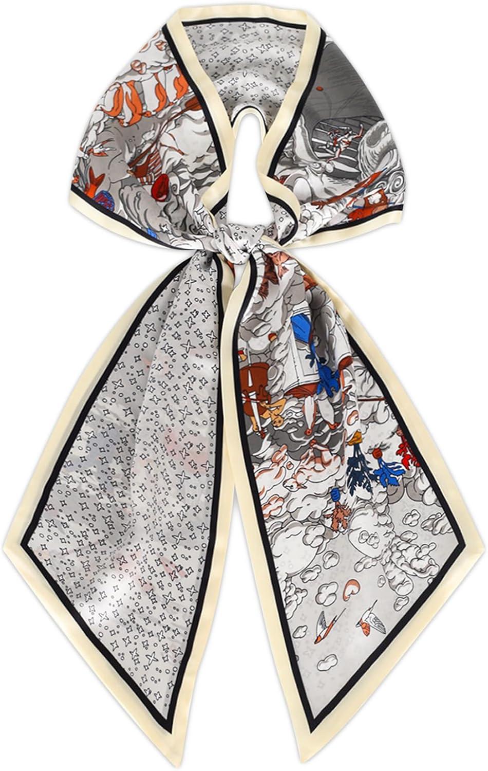 EXTREE Satin Scarf 100% Mulberry Silk Printed Head Wrap Hair Band 5.9″” x 57″”(Diamond Shaped Horse)