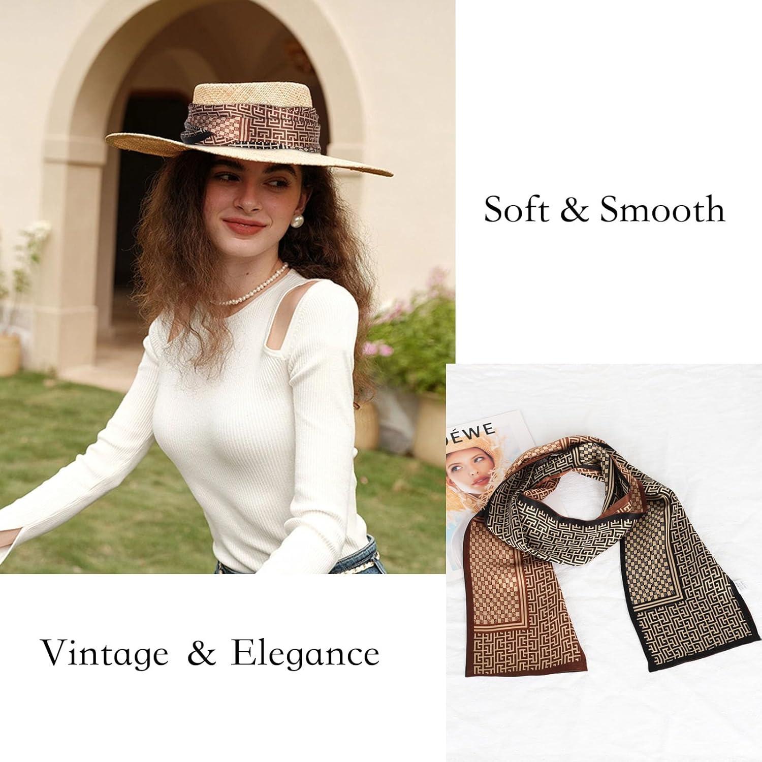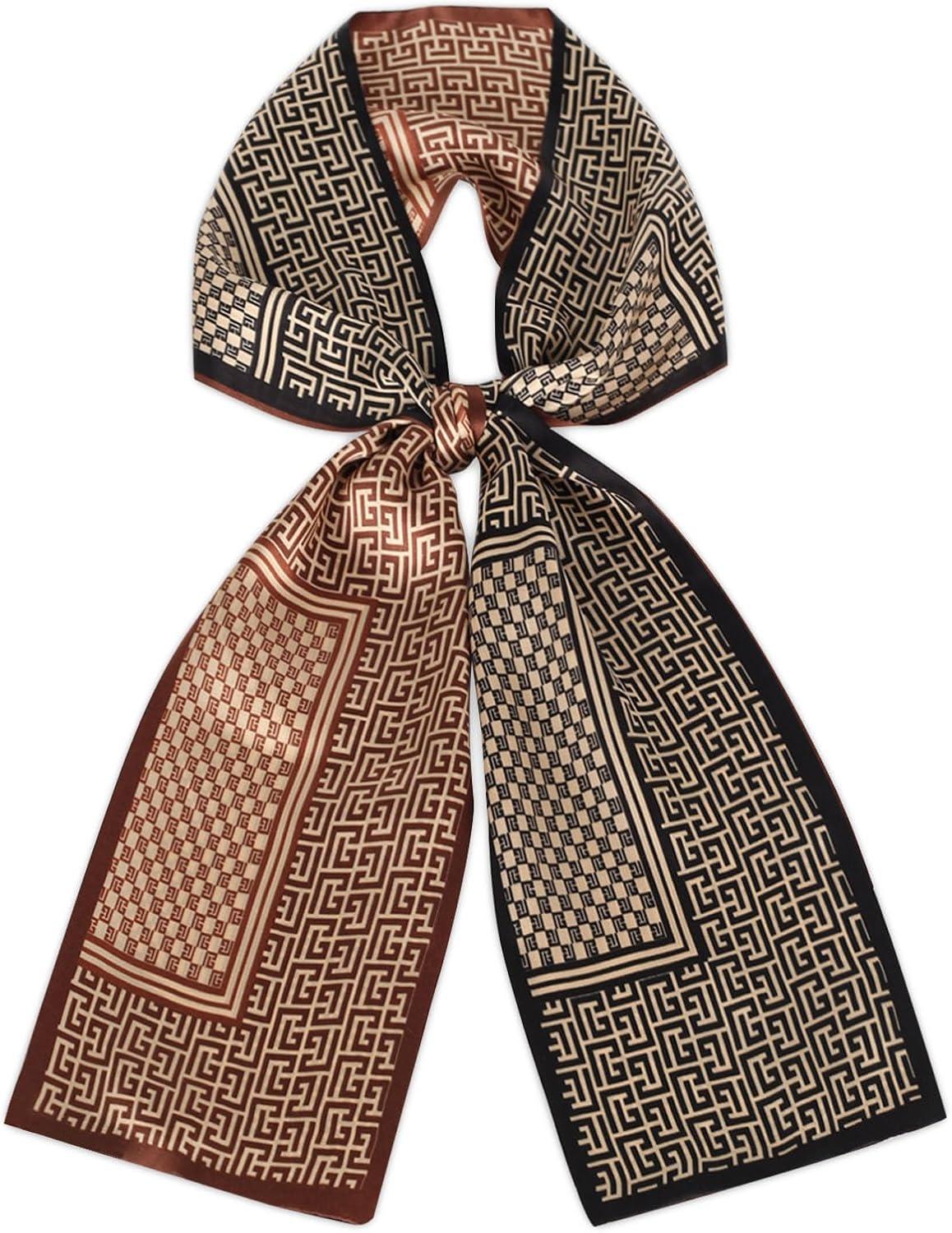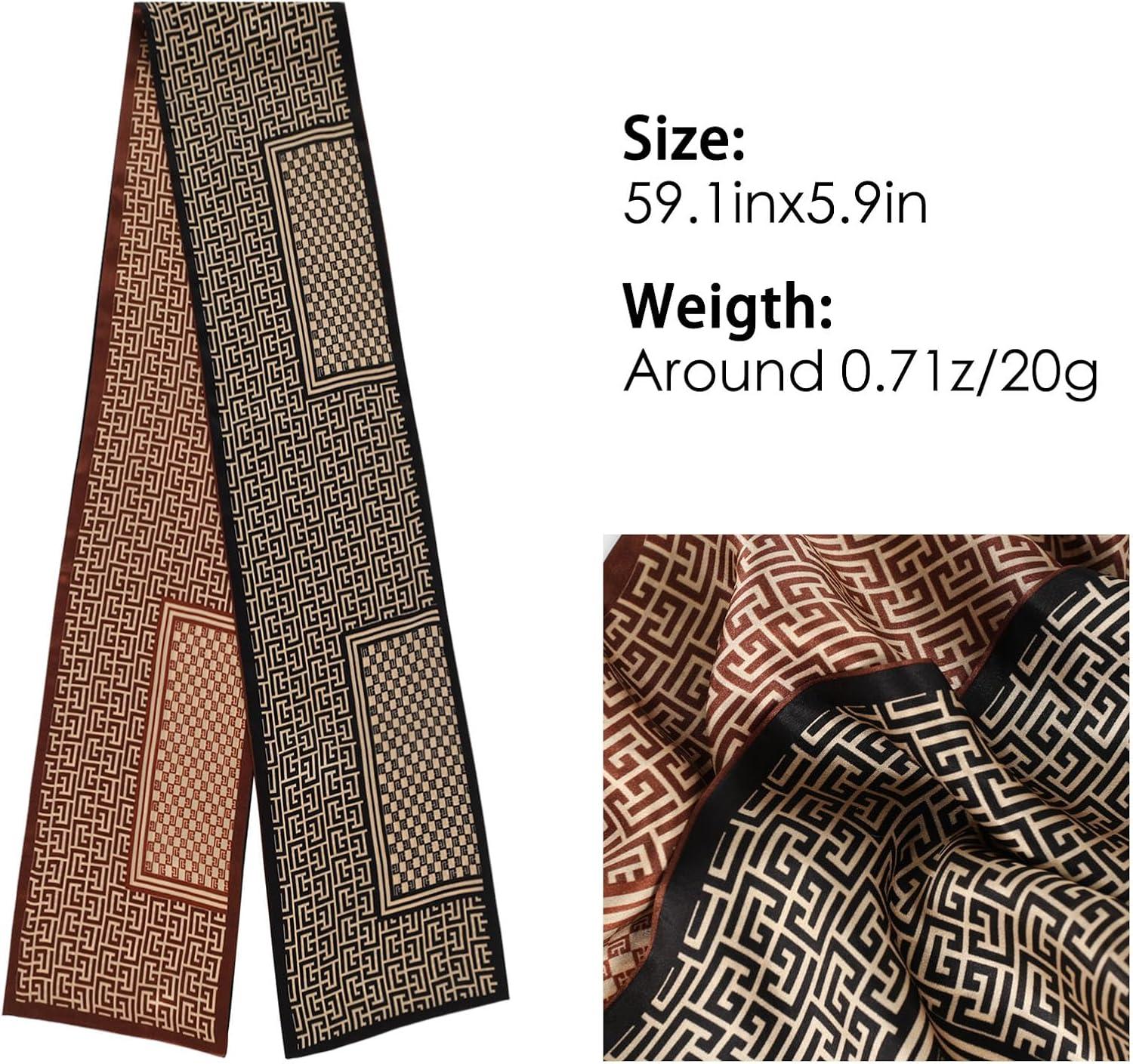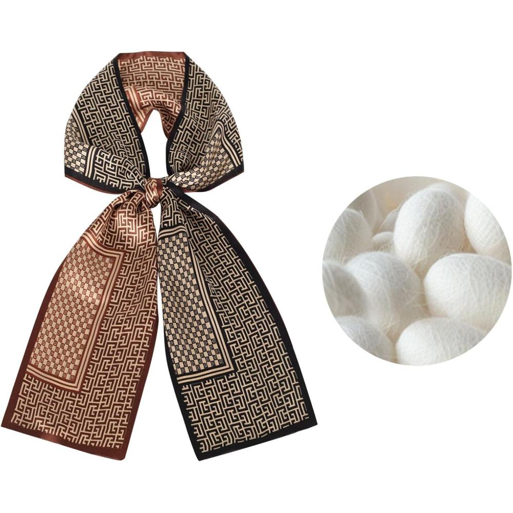 EXTREE Satin Scarf 100% Mulberry Silk Printed Head Wrap Hair Band 5.9″” x 57″”(Classic Pattern Reddish Brown)