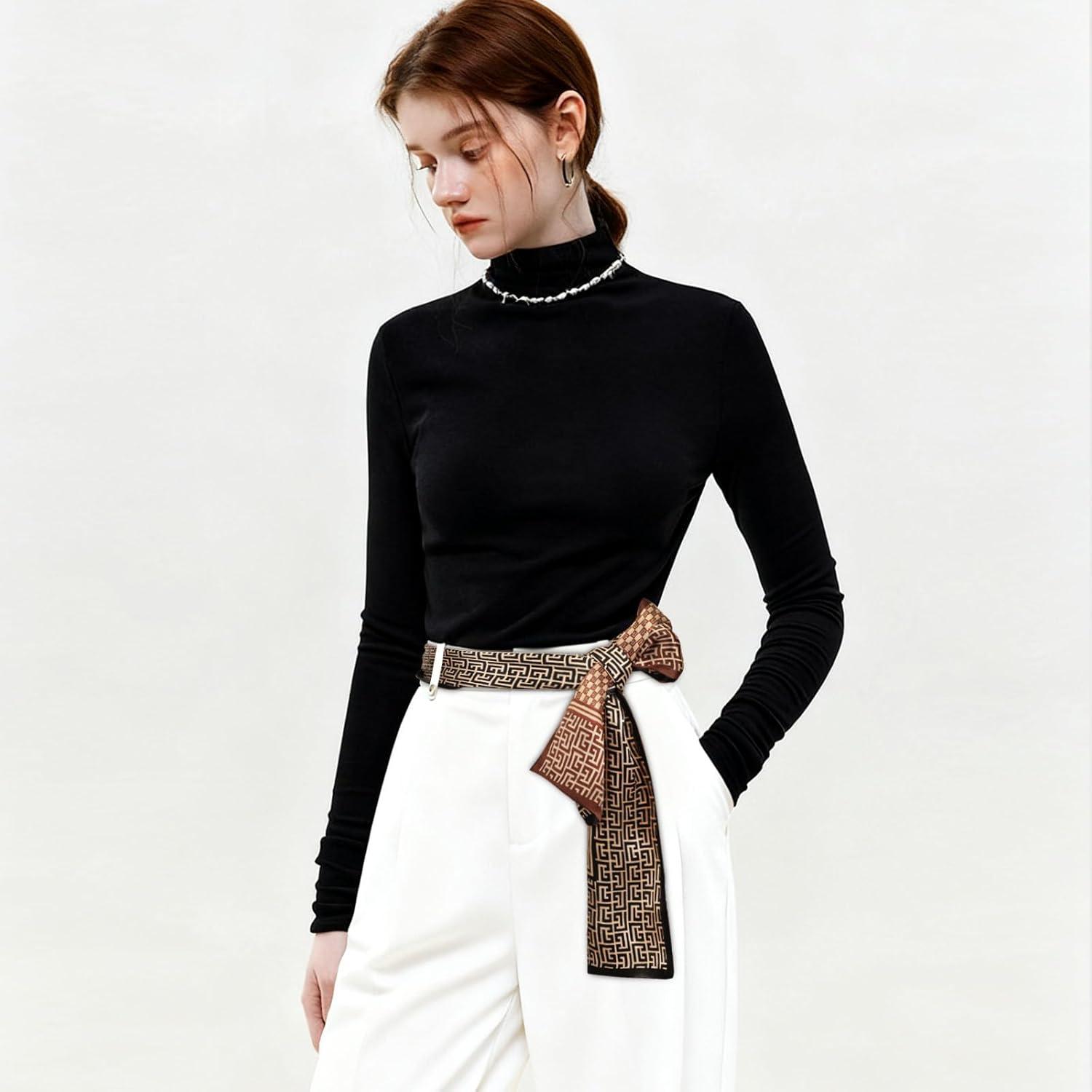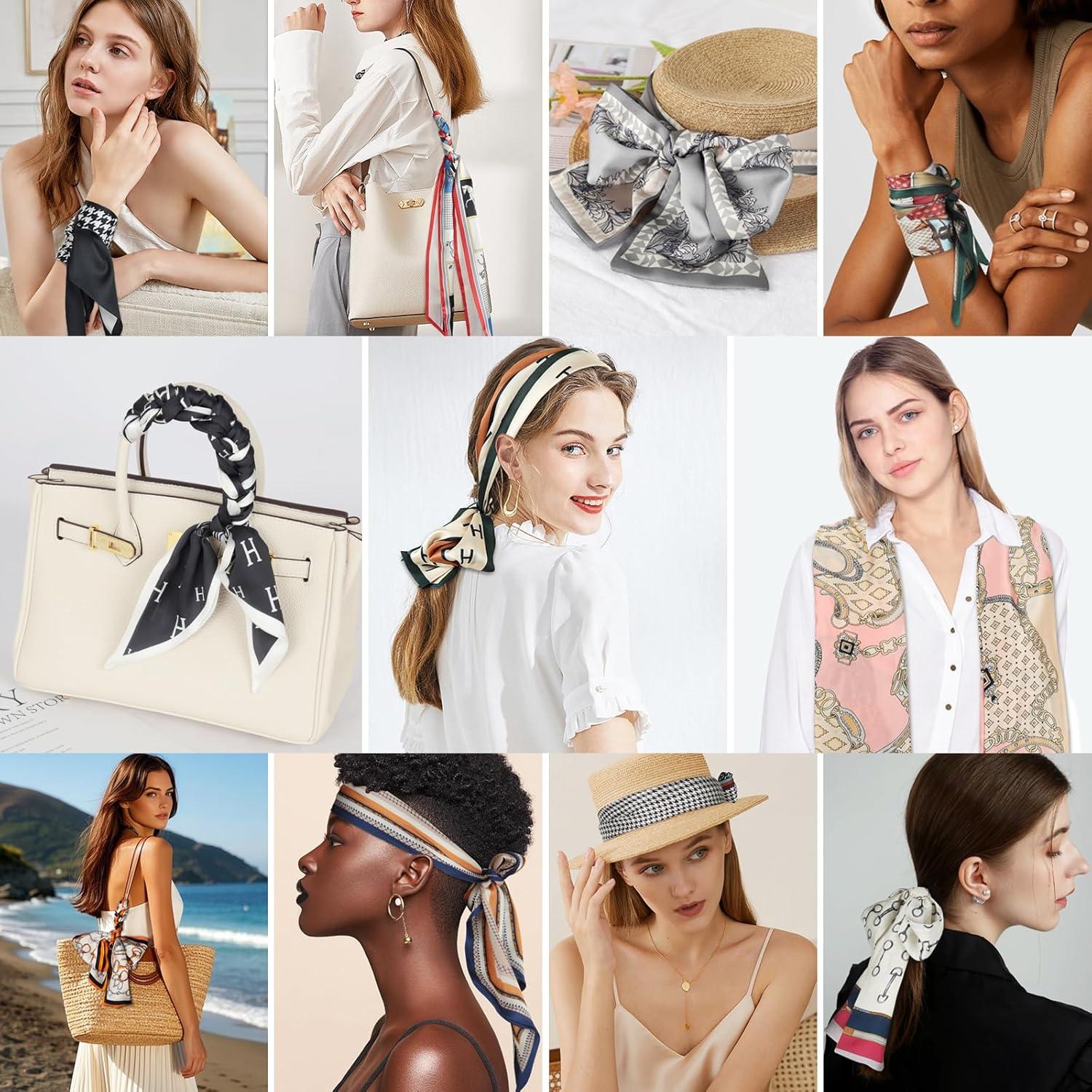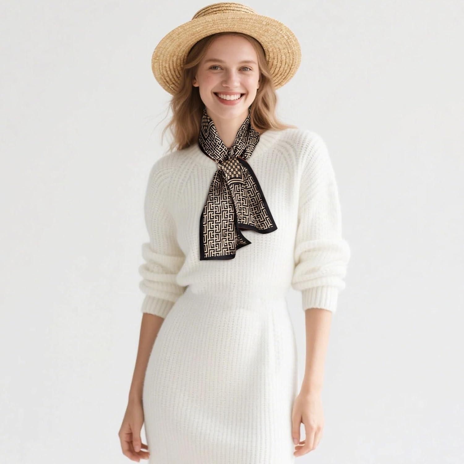 EXTREE Satin Scarf 100% Mulberry Silk Printed Head Wrap Hair Band 5.9″” x 57″”(Classic Pattern Reddish Brown)