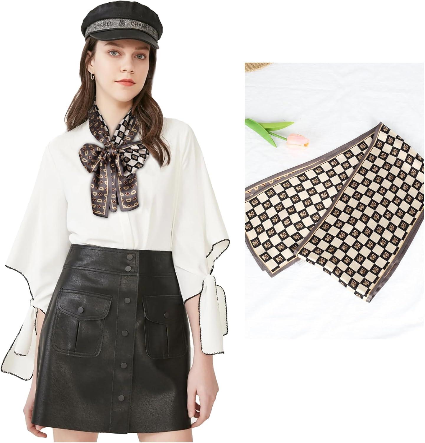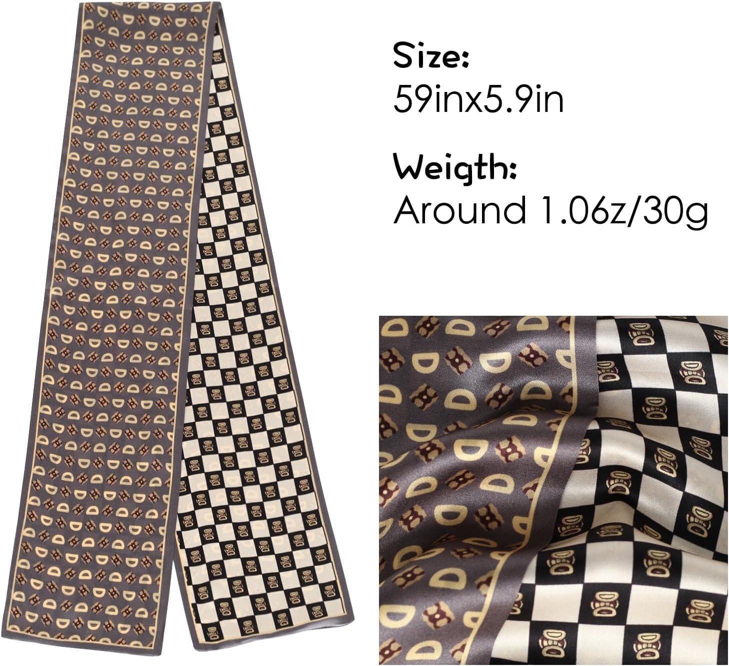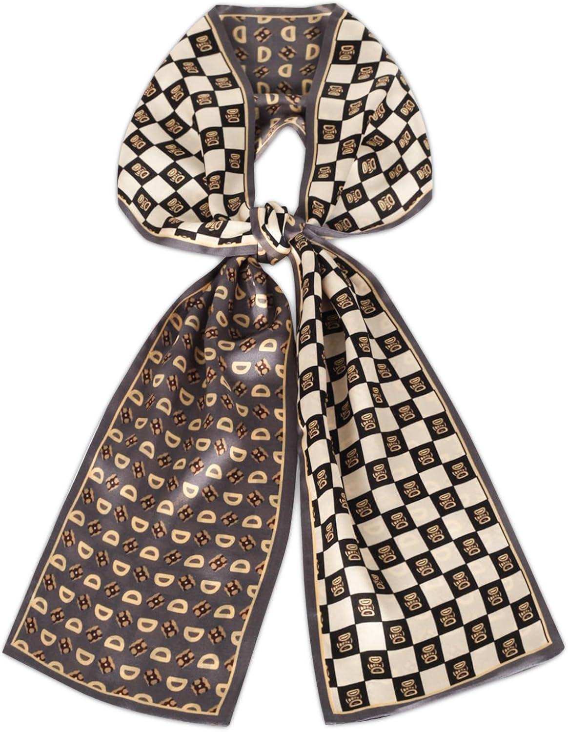EXTREE Satin Scarf 100% Mulberry Silk Printed Head Wrap Hair Band 5.9″” x 57″”(Elegant Chessboard)