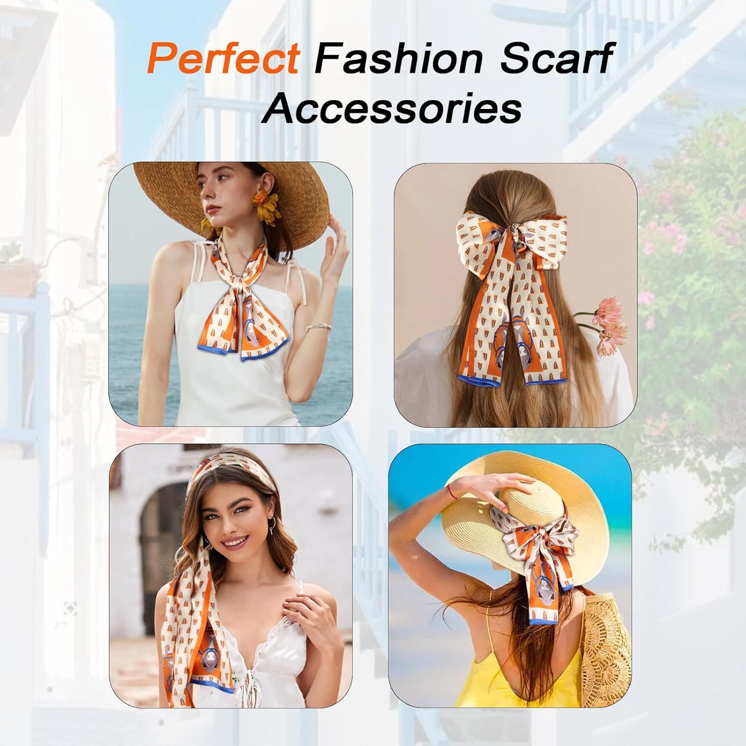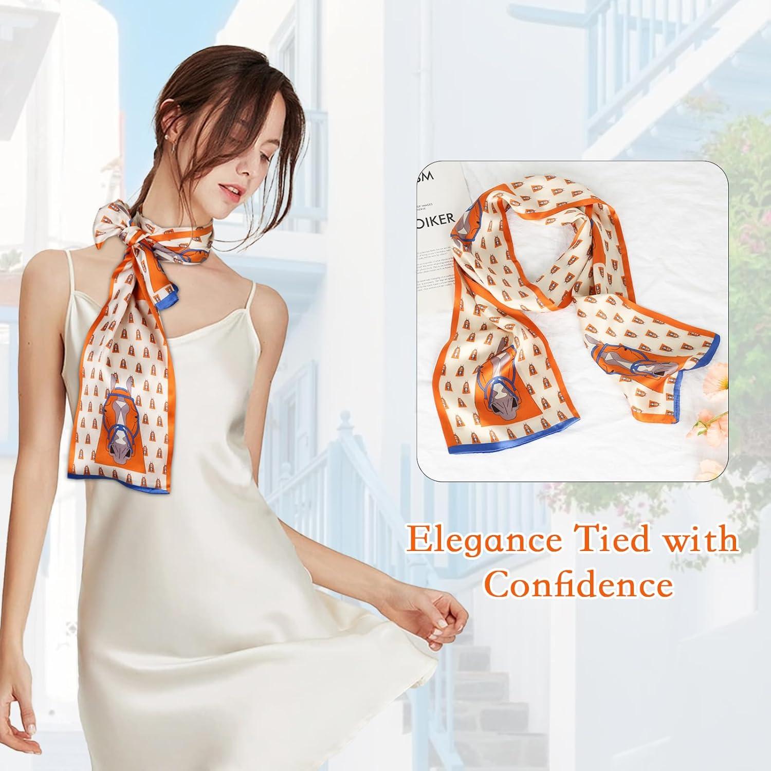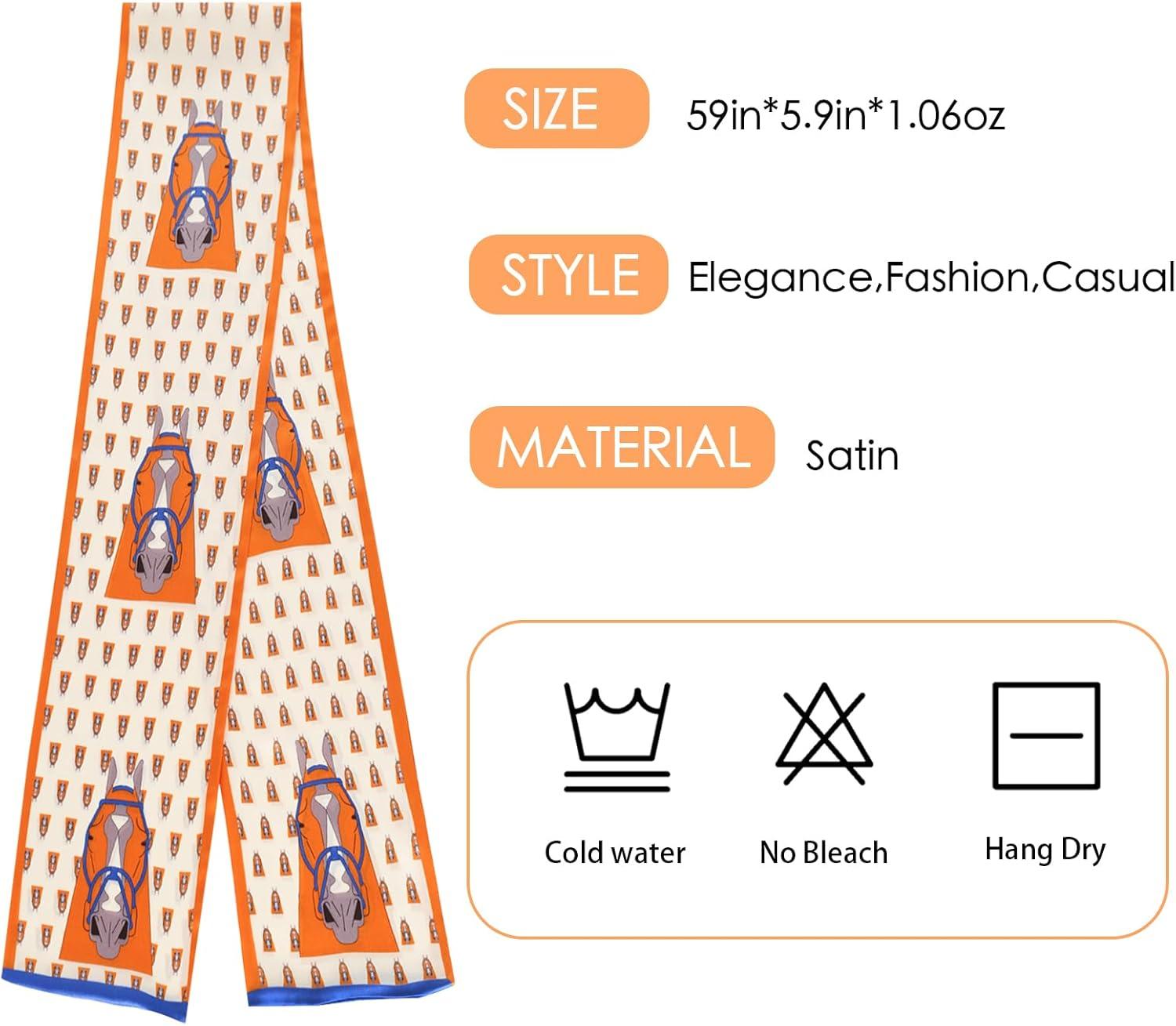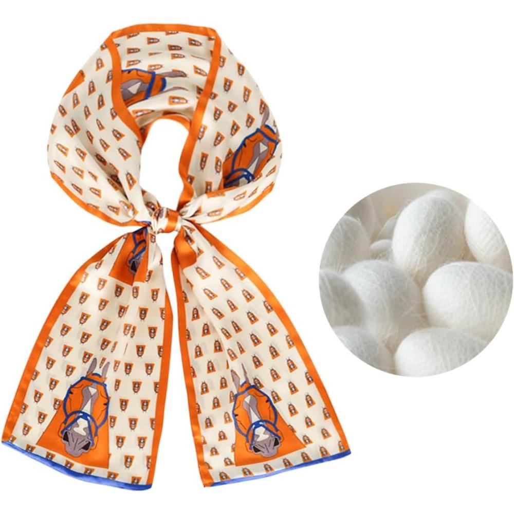EXTREE Satin Scarf 100% Mulberry Silk Printed Head Wrap Hair Band 5.9″” x 57″”(Orange Horse)
