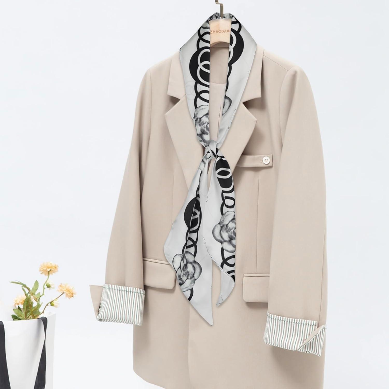 EXTREE Satin Scarf Mulberry Silk Printed Head Wrap Hair Band 7″” x 59″”(A052)
