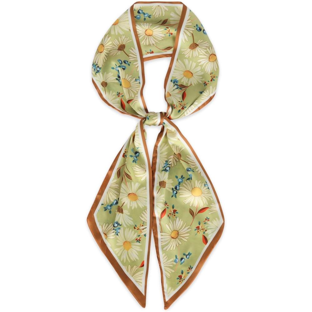 EXTREE Satin Scarf Mulberry Silk Printed Head Wrap Hair Band 7″” x 59″”(A079)