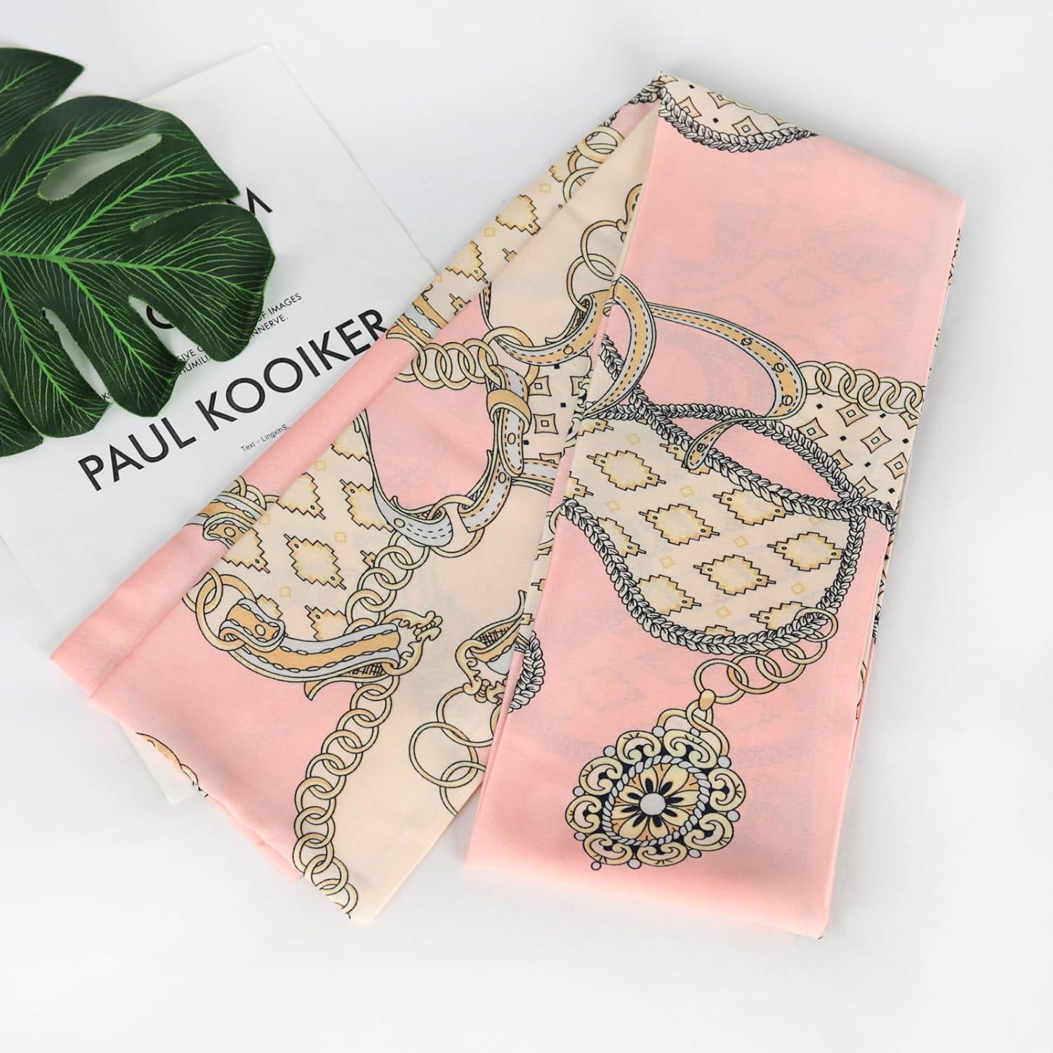 EXTREE Satin Scarf Mulberry Silk Printed Head Wrap Hair Band 7″” x 59″”(A089)