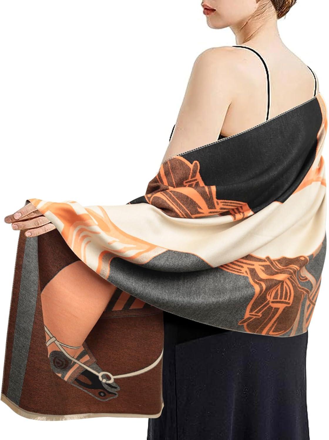 EXTREE Scarfs for Women Pashmina Silky Shawl Wrap for Evening Dressing Blanket Open Front Poncho Cape(Aam-orange)
