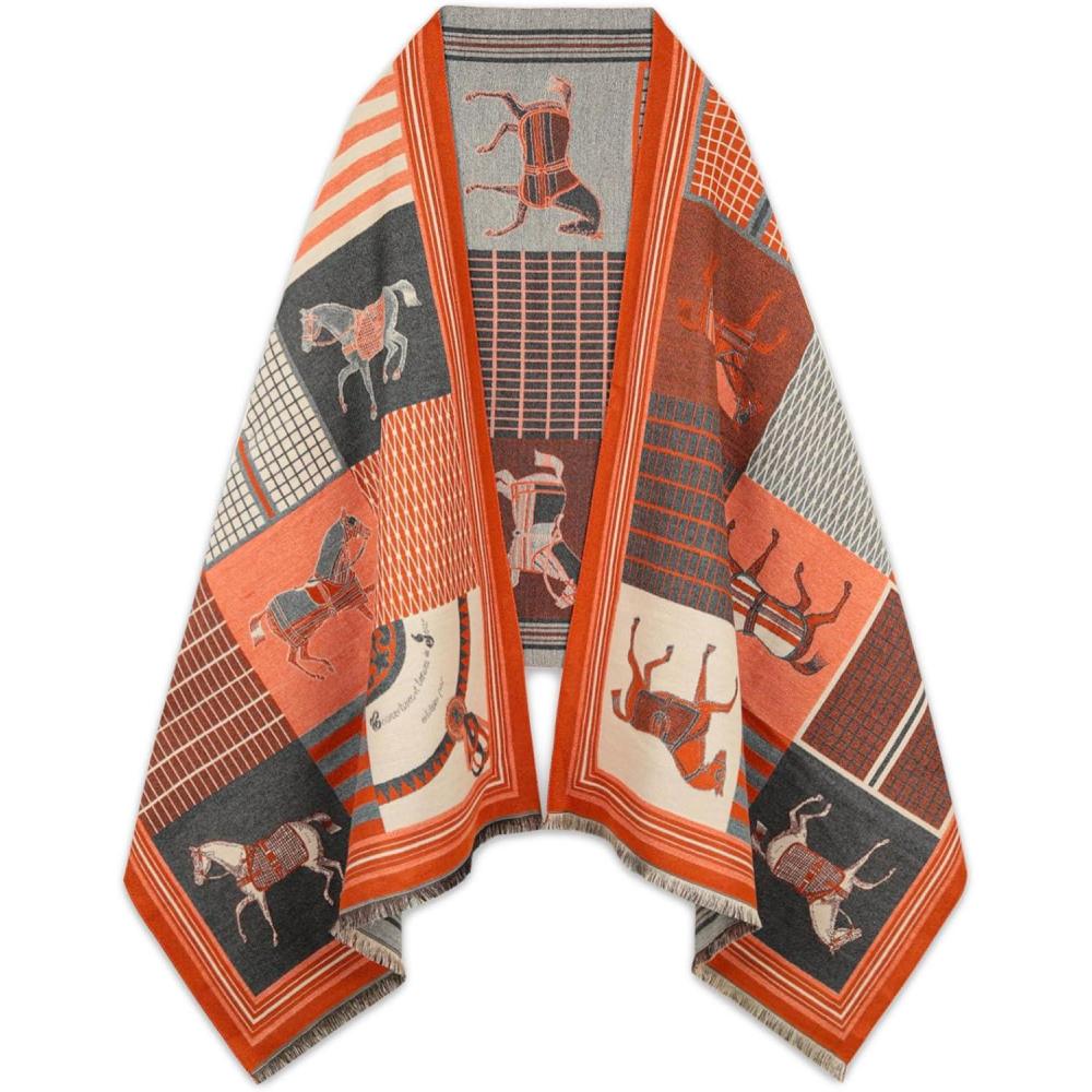EXTREE Scarfs for Women Pashmina Silky Shawl Wrap for Evening Dressing Blanket Open Front Poncho Cape(Aei-orange)